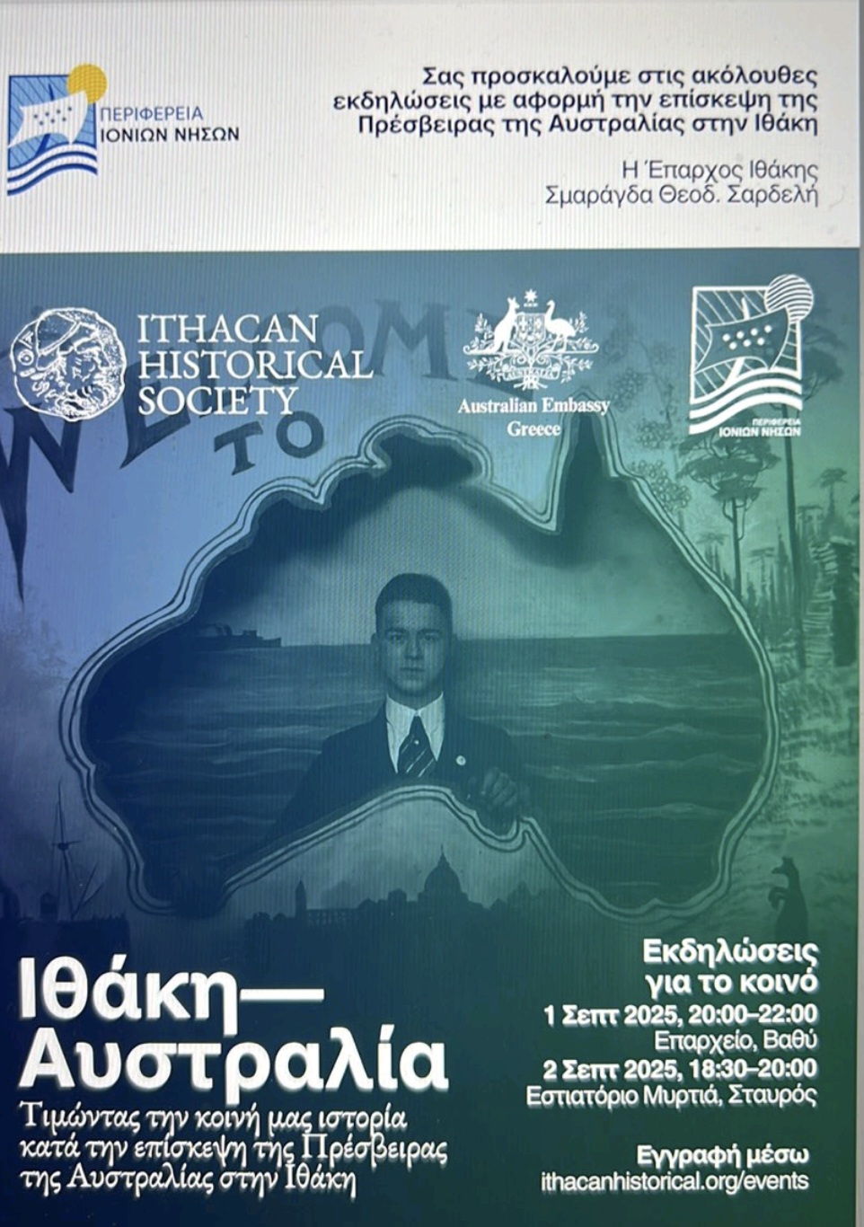 Επίσημο Δείπνο παραθέτει η Περιφέρεια Ιονίων Νήσων και δη η Έπαρχος Ιθάκης κ Σμαράγδα Σαρδελή προς τιμήν της Πρέσβειρας της Αυστραλίας κ. Alison Duncan στο Εστιατόριο ” ΜΥΡΤΙΑ”, στον Σταυρό, με την ευγενική συμμετοχή της Ιστορικής Εταιρείας Ιθάκης Ithacan  Historical Society.