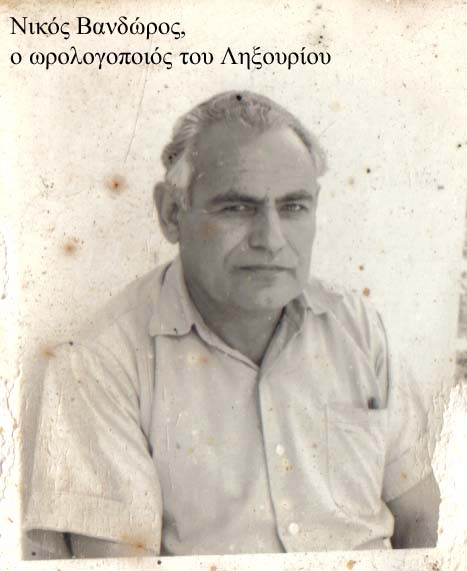 Ο Νίκος Βανδώρος για τους Ληξουριώτες ήταν μια φυσιογνωμία ικανού τεχνίτη πάνω σε ένα μεγάλο πλήθος τεχνικών θεμάτων, ιδίως για τα ρολόγια, Το πέρασμά του δε από αυτήν την πόλη, έγραψε μια σελίδα στην ιστορία των παραδοσιακών επαγγελμάτων. Γεννήθηκε στις 3 Μαρτίου του 1916 στα Αντυπάτα της Ερύσσου και ήταν ένα από τα τρία παιδιά του Χαράλαμπου Βανδώρου και της Μαρίας Ιωάννη Τουλιάτου.