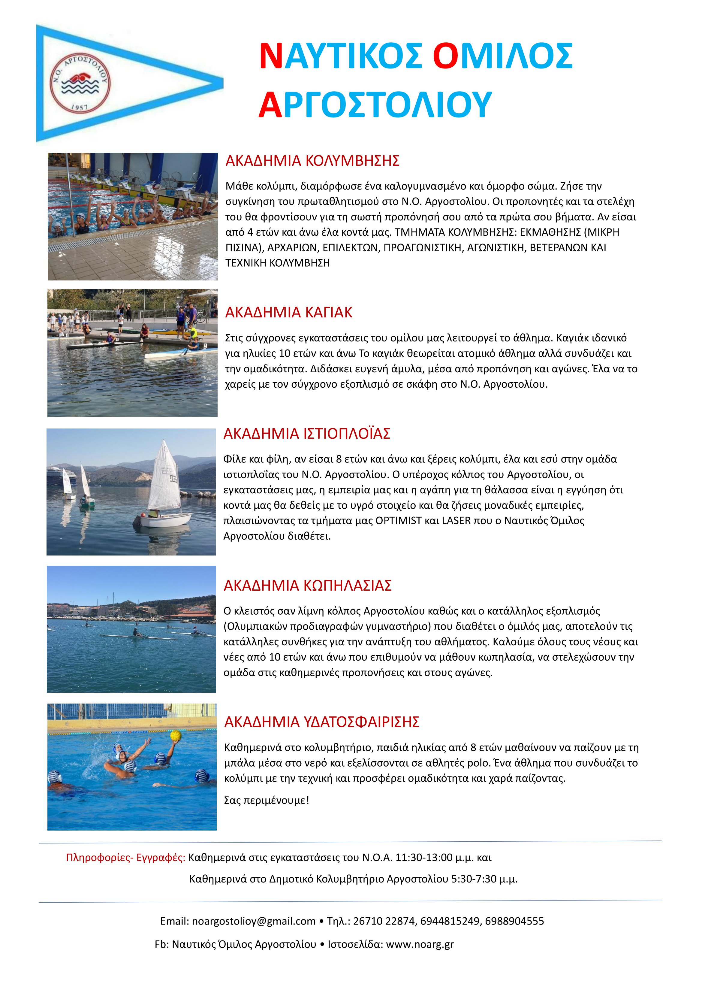 Ναυτικός Όμιλος Αργοστολίου άρχισαν οι εγγραφές….