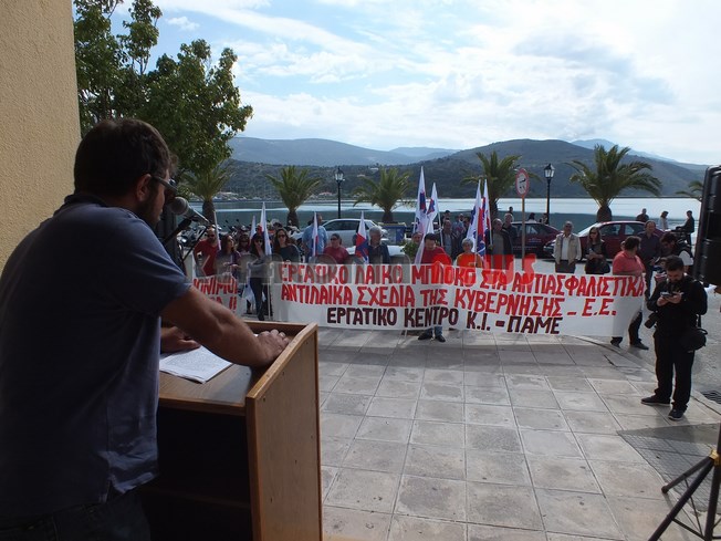 Στην ομιλία του ο Γερ. Βαλεντής κατήγγειλε  την απεργοσπαστική τακτική των εφοπλιστών. Οι εφοπλιστές, για τους οποίους δουλεύει η κυβέρνηση ΣΥΡΙΖΑ – ΑΝΕΛ βαδίζοντας στα χνάρια των πλοηγούμενων, αξιοποίησαν την πολιτική κίνηση της κυβέρνησης να φέρει το νομοσχέδιο λαιμητόμο για ασφαλιστικό και φορολογικό, σαν τον κλέφτη, το Σαββατοκύριακο. Άσκησαν πίεση στα πληρώματα τους πλοίων τους κόβοντας εισιτήρια για δρομολόγια που ξεκινούσαν μετά την έναρξη της απεργίας και προσπάθησαν να διαμορφώσουν όρους κοινωνικού αυτοματισμού. Παρά το γεγονός ότι δύο δρομολόγια των δύο βασικών εταιρών που δρουν στο νησί έγιναν το πρωί ένα από και ένα προς Κεφαλονιά, η παρέμβαση του ΕΚΚΙ έδειξε ότι υπάρχει στήριξη στην απεργία τόσο από τη μεγάλη μερίδα του επιβατικού κοινού όσο και από τα πληρώματα. Είναι σημαντικό ότι οι ίδιοι οι ναυτεργάτες στο λιμάνι του Πόρου κατήγγειλαν τις μεθοδεύσεις κυβέρνησης – εταιριών, στάθηκαν στο πλευρό μας και δήλωσαν ότι δεν θα πραγματοποιήσουν κανένα δρομολόγιο στη συνέχεια.