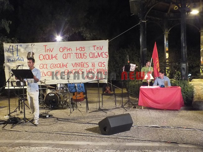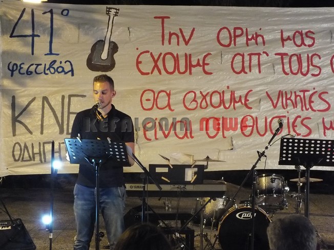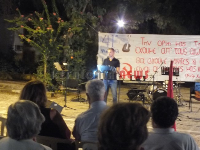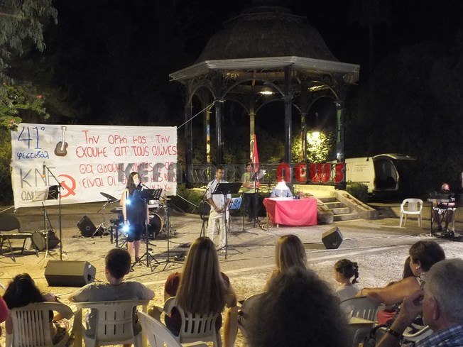 Χθες ολοκληρώθηκαν στο νομό μας οι εκδηλώσεις του 41ου Φεστιβάλ της ΚΝΕ και του Οδηγητή στο Αργοστόλι Κεφαλονιάς στον κήπο του Νάπιερ. Οι εκδηλώσεις περιελάμβαναν επίδειξη παραδοσιακών χορών, παράσταση καραγκιόζη από τον Αλέξανδρο Μελισσηνό και ένα Μουσικοθεατρικό αφιέρωμα στο Ν. Καββαδία “Τεράστιο το κουράγιο μου. Και που να δεις ακόμα”, από ομάδα μαθητών του νησιού. Οι εκδηλώσεις τέλειωσαν με μια Ροκ συναυλία με τους Sonus Replica. Στο χώρο λειτούργησε έκθεση αυθεντικών χαρακτικών της Βάσως Κατράκη, εκθέσεις για τους αλύγιστους της ταξικής πάλης σε Κεφαλονιά και Ιθάκη, βιβλιοπωλείο της Σύγχρονης Εποχής με όλες τις τελευταίες κυκλοφορίες, παιδότοπος και μπαρ.