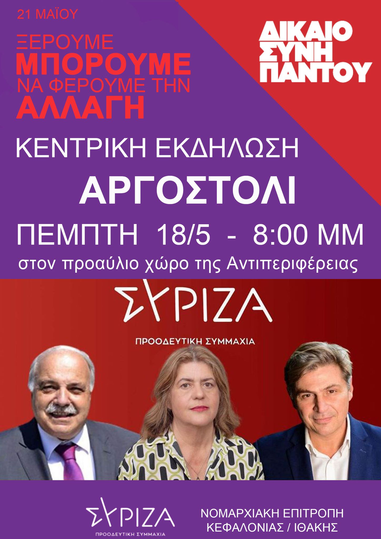 Στις 21 Μαΐου κάνουμε τα θέλω μας πράξη, κάνουμε την αλλαγή πράξη.