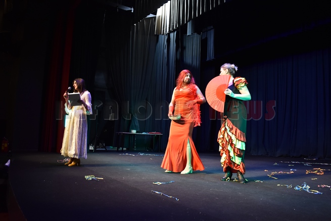 Παρακολούθησε την αποκριάτικη εκδήλωση ο Δήμαρχος κ. Θ. Μιχαλάτος. Ο Βίκτορας Ρουχωτάς ξεκίνησε το πρόγραμμα. Παίχτηκε ένα σκετς που παρουσίαζε η Βάλια Σαμόλη