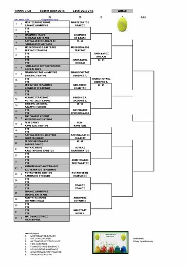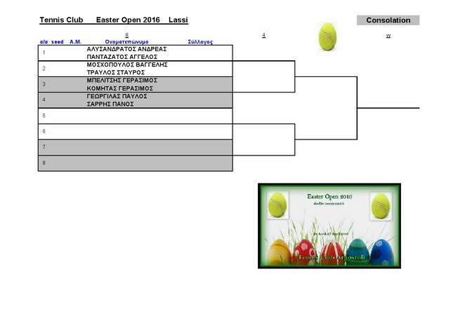 Το Tennis Club πρώτα με το Christmas Open και τώρα με το Easter Open, αγώνες τένις μέσα στις γιορτές,προσπαθεί να δώσει χαρακτήρα διασκέδασης και ψυχαγωγίας μέσα από το άθλημα του τένις που αγαπάμε.