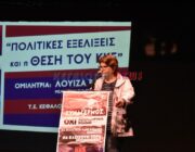 Εκδήλωση από την Τ.Ε Κεφαλονιάς και Ιθάκης του ΚΚΕ με ομιλήτρια την Λουίζα Ράζου μέλος του Π.Γ. της Κ.Ε. του ΚΚΕ στο Δημοτικό Θέατρο Αργοστολίου, για τις πολιτικές εξελίξεις και τη θέση του ΚΚΕ.
