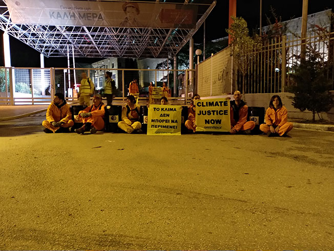 Ακτιβιστές της Greenpeace εμποδίζουν την είσοδο οχημάτων στις εγκαταστάσεις των ΕΛΠΕ στον Ασπρόπυργο, έχοντας προσδεθεί με αλυσίδες στην κύρια πύλη και αναρτώντας πανό με κεντρικό μήνυμα «ΕΞΟΡΥΞΕΙΣ = ΚΛΙΜΑΤΙΚΟ ΕΓΚΛΗΜΑ». Οι ακτιβιστές απαιτούν από τα ΕΛΠΕ να ακυρώσουν τα σχέδια για εξορύξεις υδρογονανθράκων και να συμμορφωθούν με τις υποδείξεις της Συμφωνίας των Παρισίων. Με την επιστήμη να προειδοποιεί ότι το κλίμα απειλείται με κατάρρευση[1] αν δεν σταματήσουμε τις εξορύξεις και τη χρήση ορυκτών καυσίμων τα επόμενα 20-25 χρόνια, τα σχέδια των ΕΛΠΕ απειλούν ευθέως το μέλλον της χώρας και παραβιάζουν το θεμελιώδες ανθρώπινο δικαίωμά μας στην ζωή.