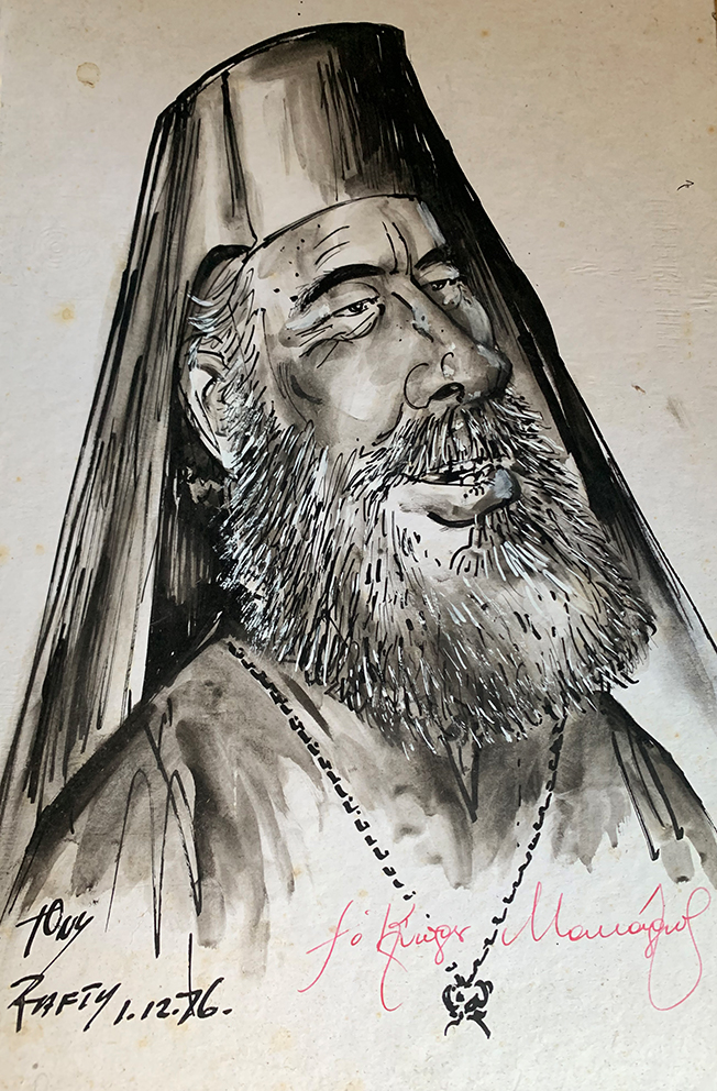 Ο Αρχιεπίσκοπος Μακάριος με τη γραφίδα του Τόνυ Ράφτυ.
