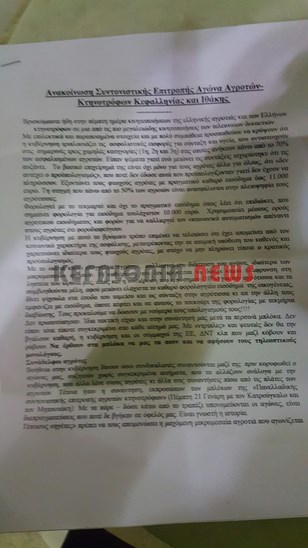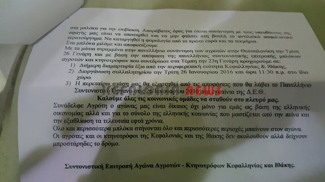 Ακολουθεί η ανακοίνωση της Συντονιστικής Επιτροπής Αγώνα Αγροτών-Κτηνοτρόφων Κεφαλονιάς-Ιθάκης