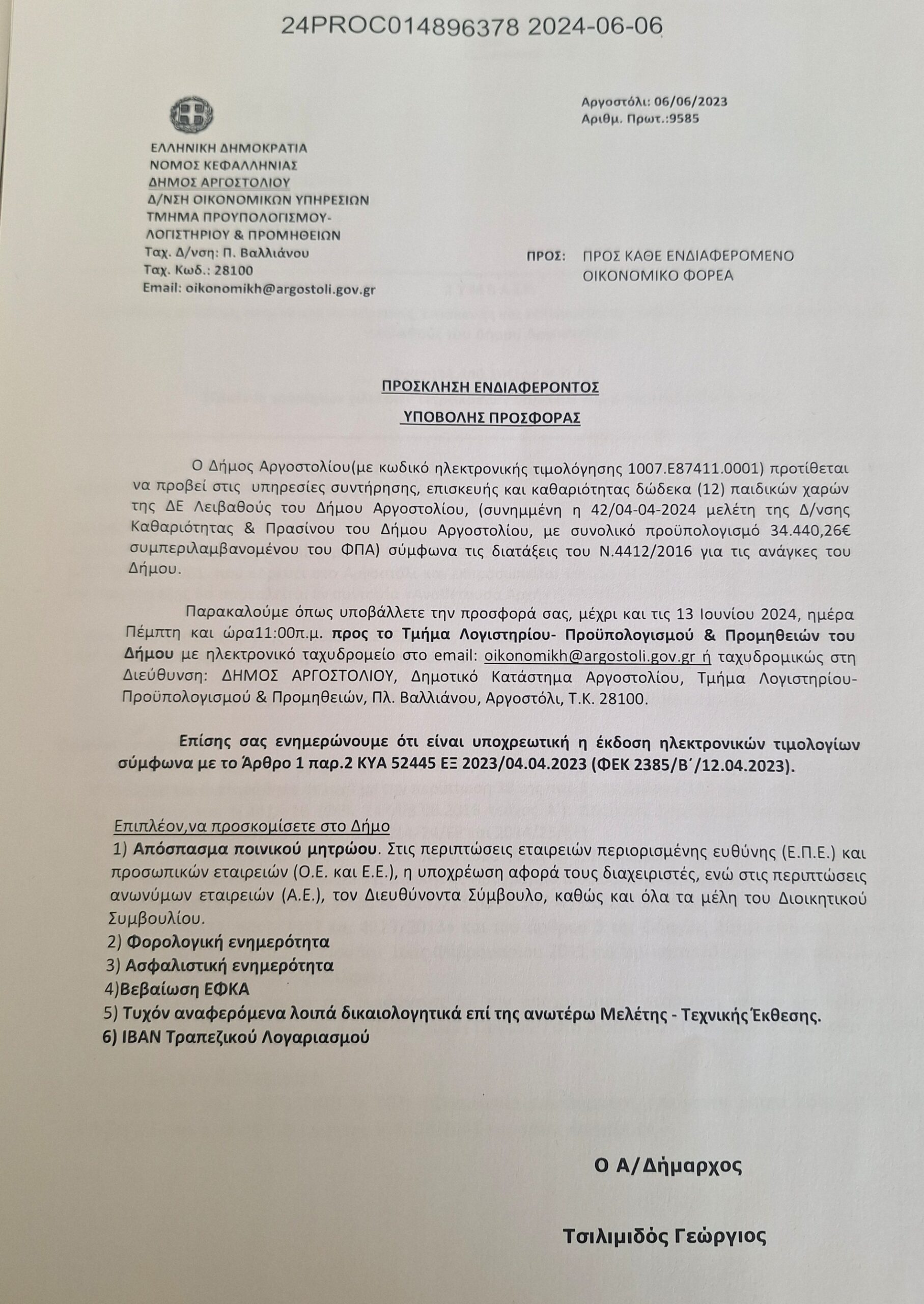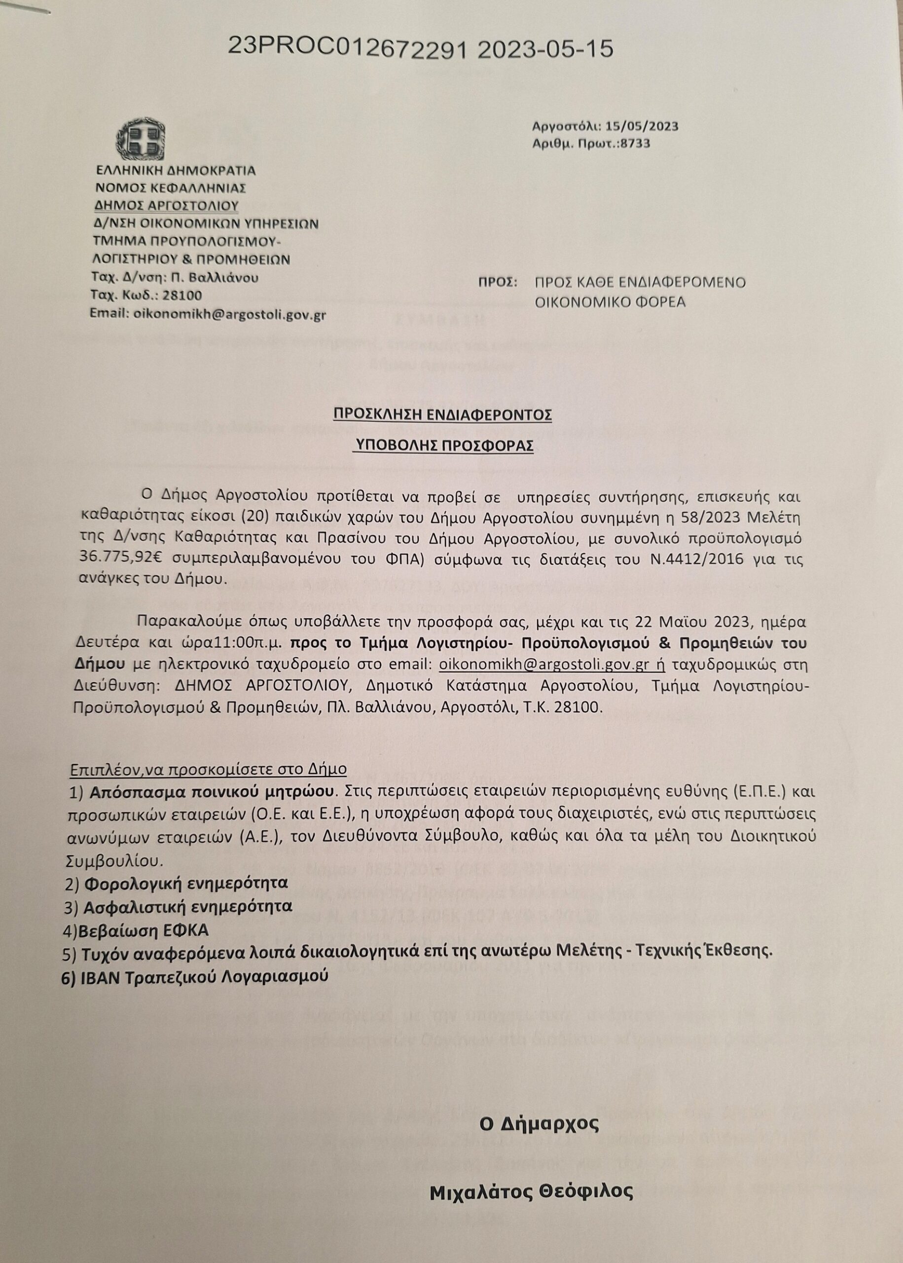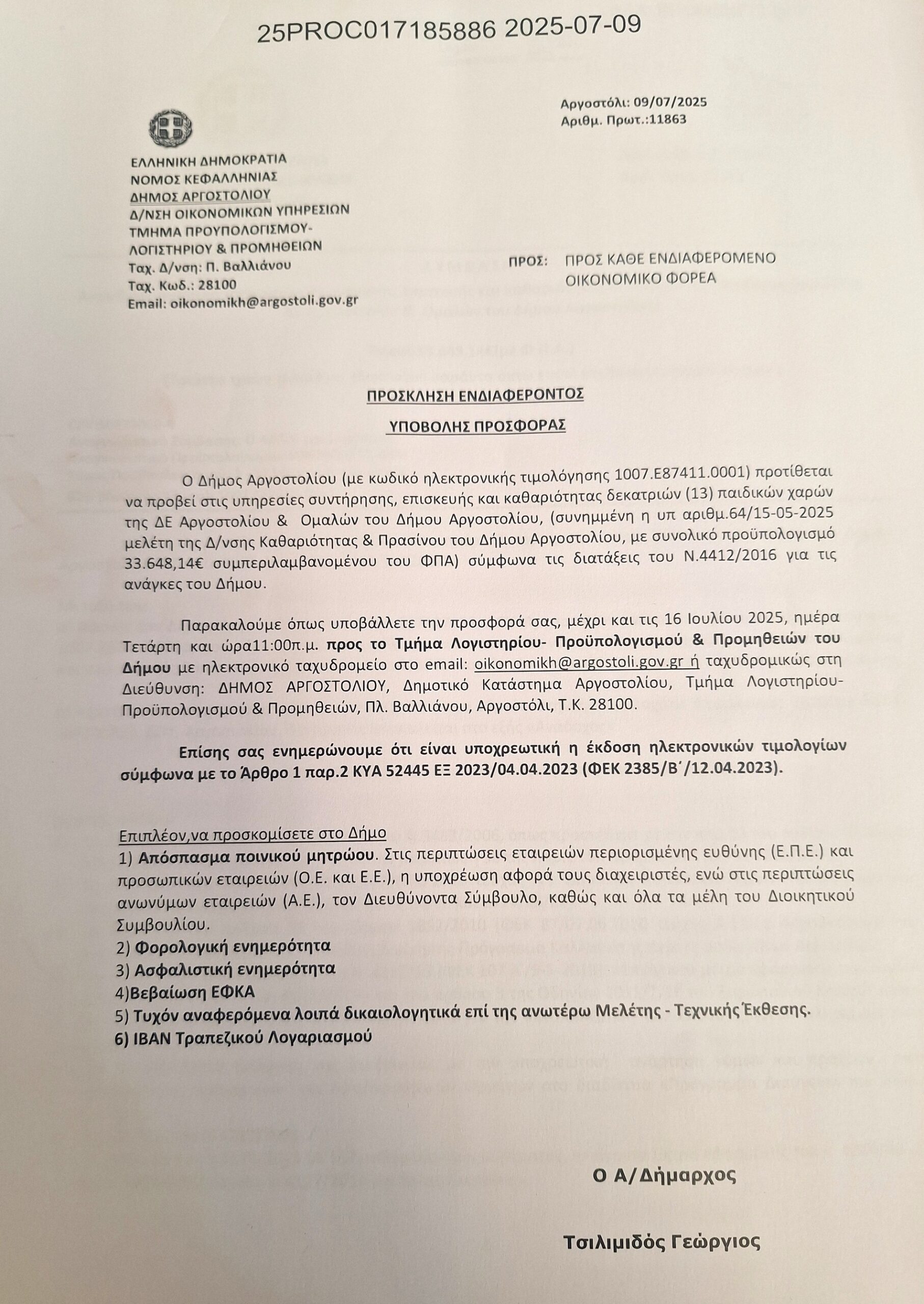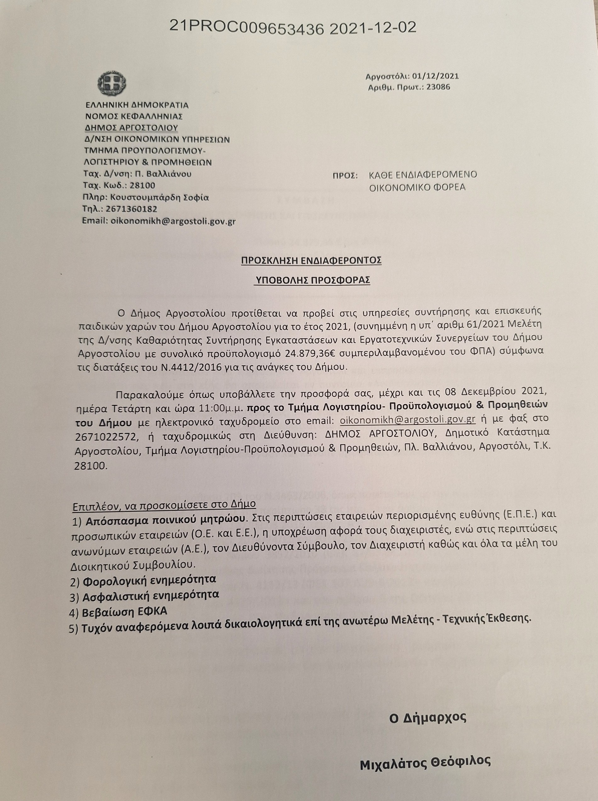 Από το Γραφείο Δημάρχου Αργοστολίου