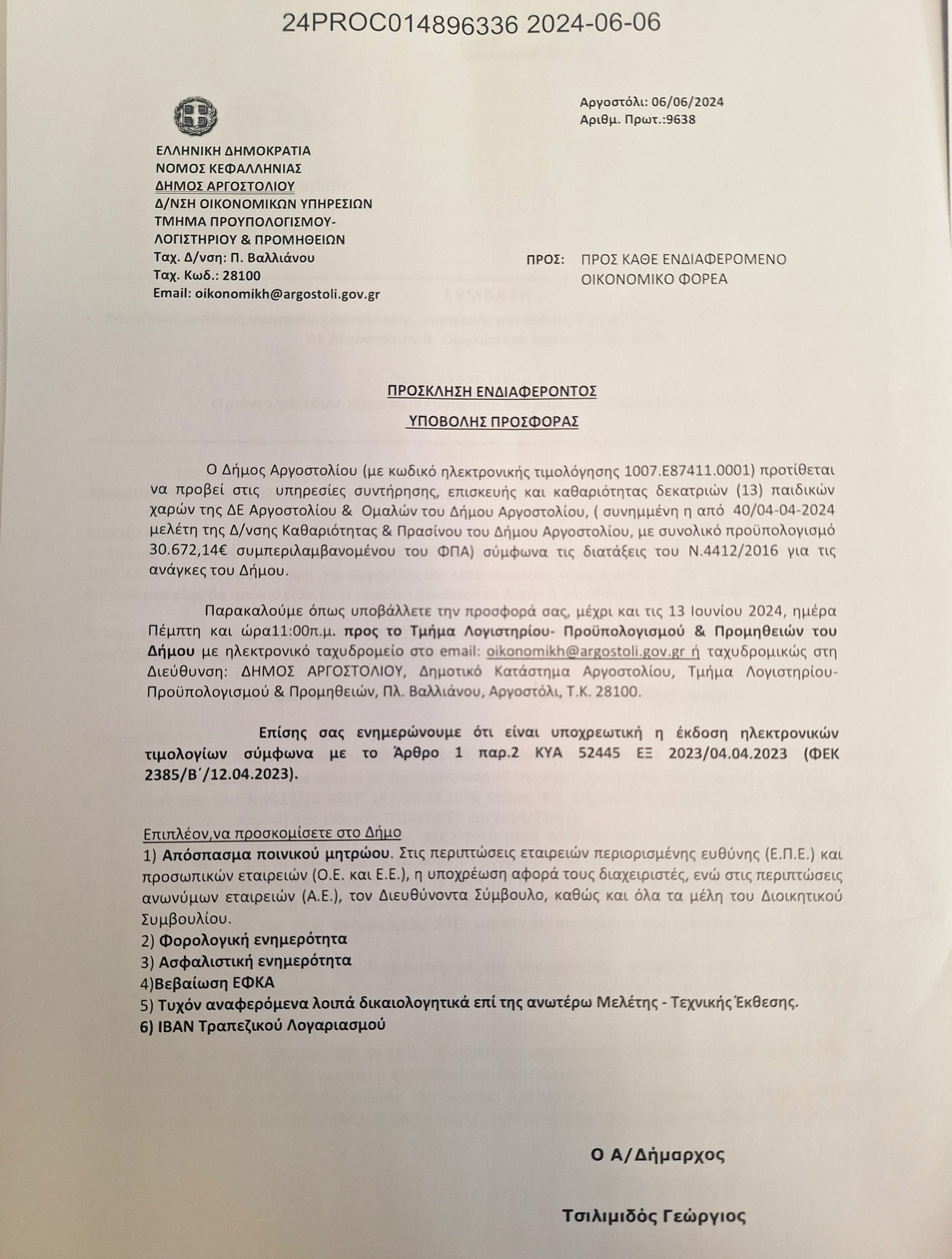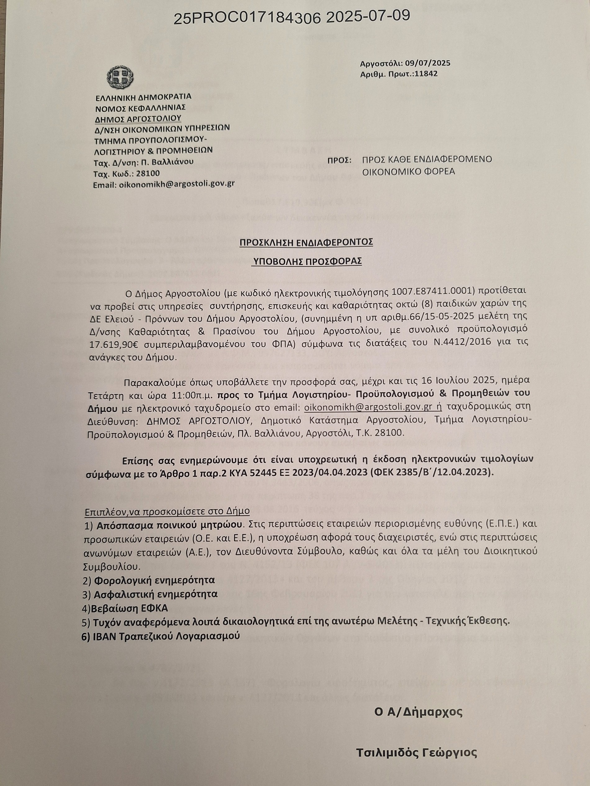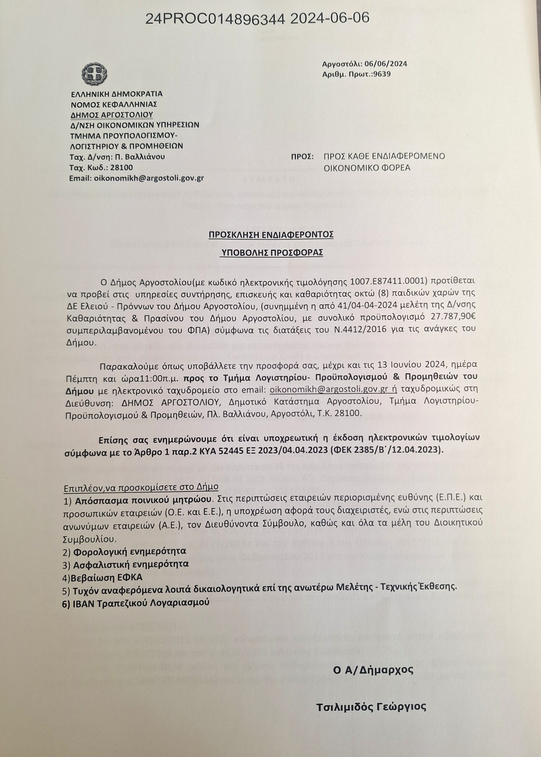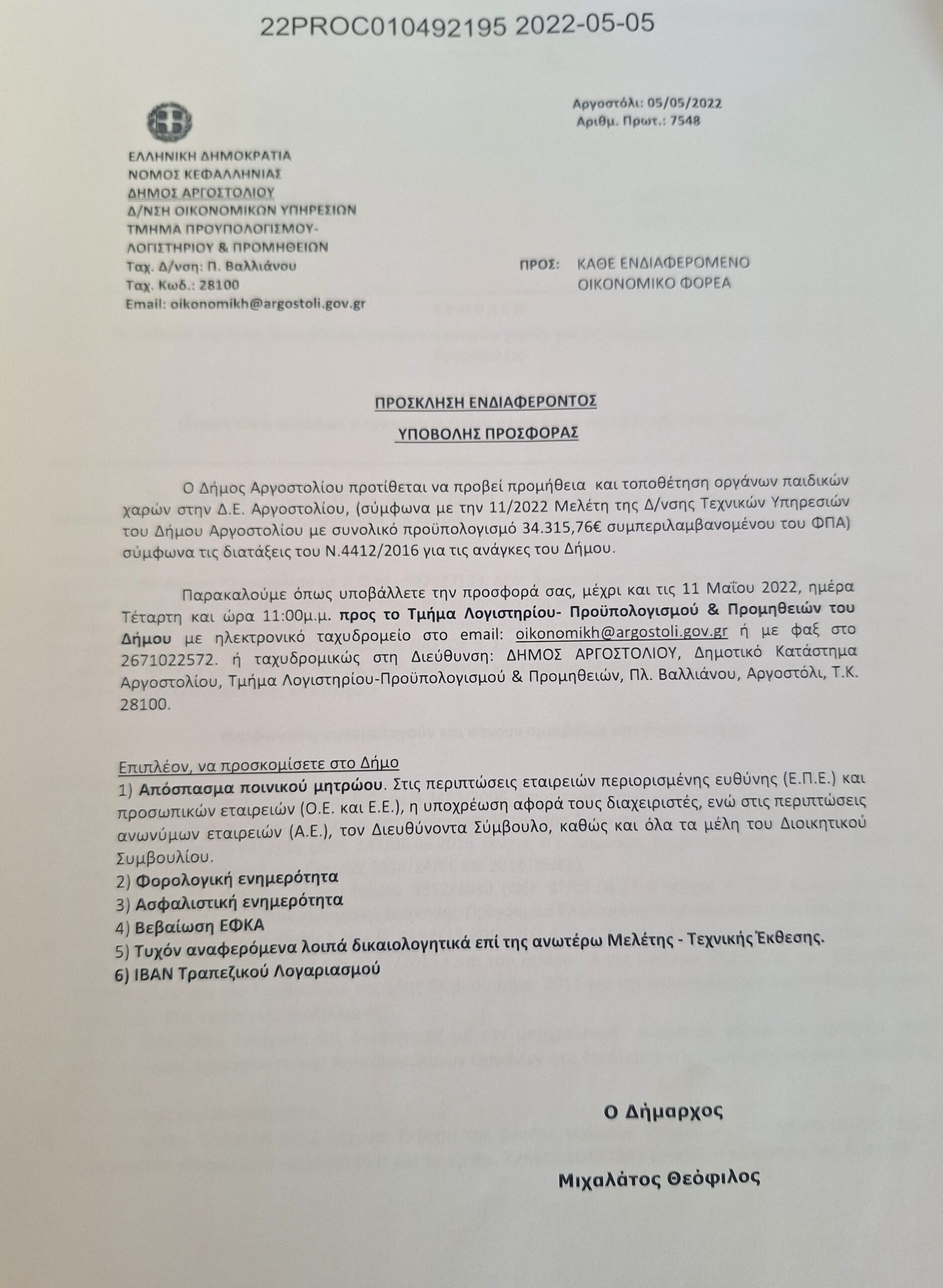 Από το Γραφείο Δημάρχου Αργοστολίου