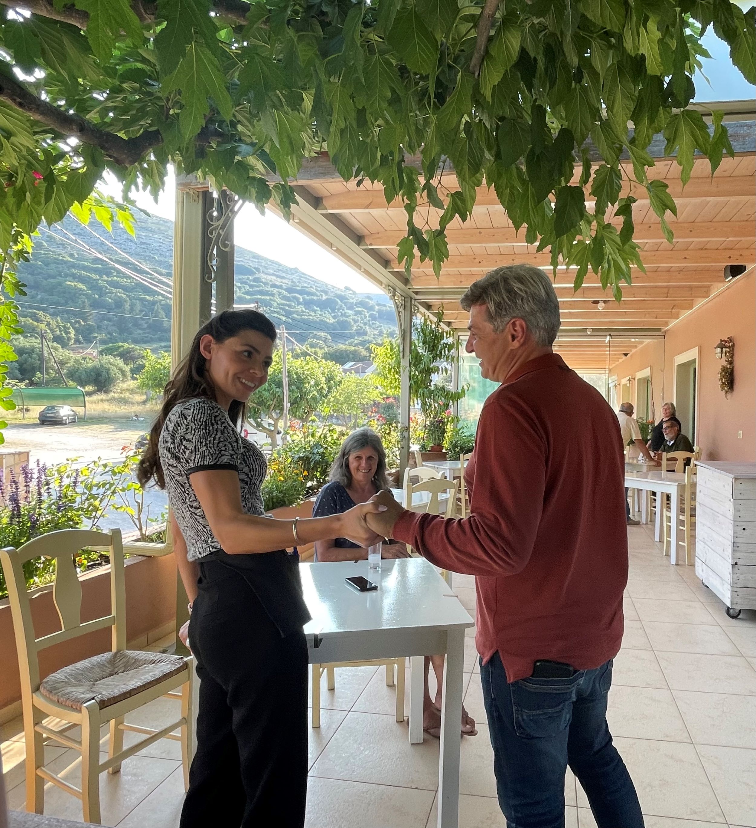 Τους συνόδευαν η πρώην βουλεύτρια Αφροδίτη Θεοπεφτάτου, ο Γραμματέας της Νομαρχιακής Κεφαλονιάς και Ιθάκης Σπύρος Παγώνης, μέλη της Νομαρχιακής Επιτροπής και μέλη των Ο.Μ Σάμης και Λειβαθούς.