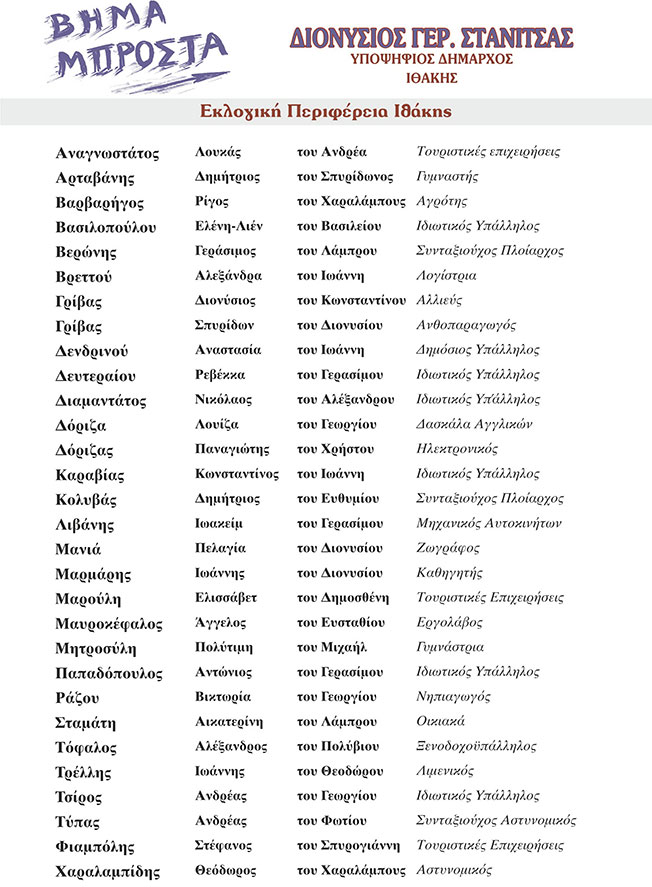 Οι Υποψήφιοι του Διον. Στανίτσα “ΒΗΜΑ ΜΠΡΟΣΤΑ” στην Ιθάκη.