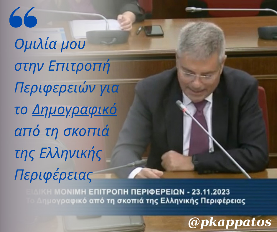 Ομιλία στην Επιτροπή Περιφερειών για το Δημογραφικό…..
