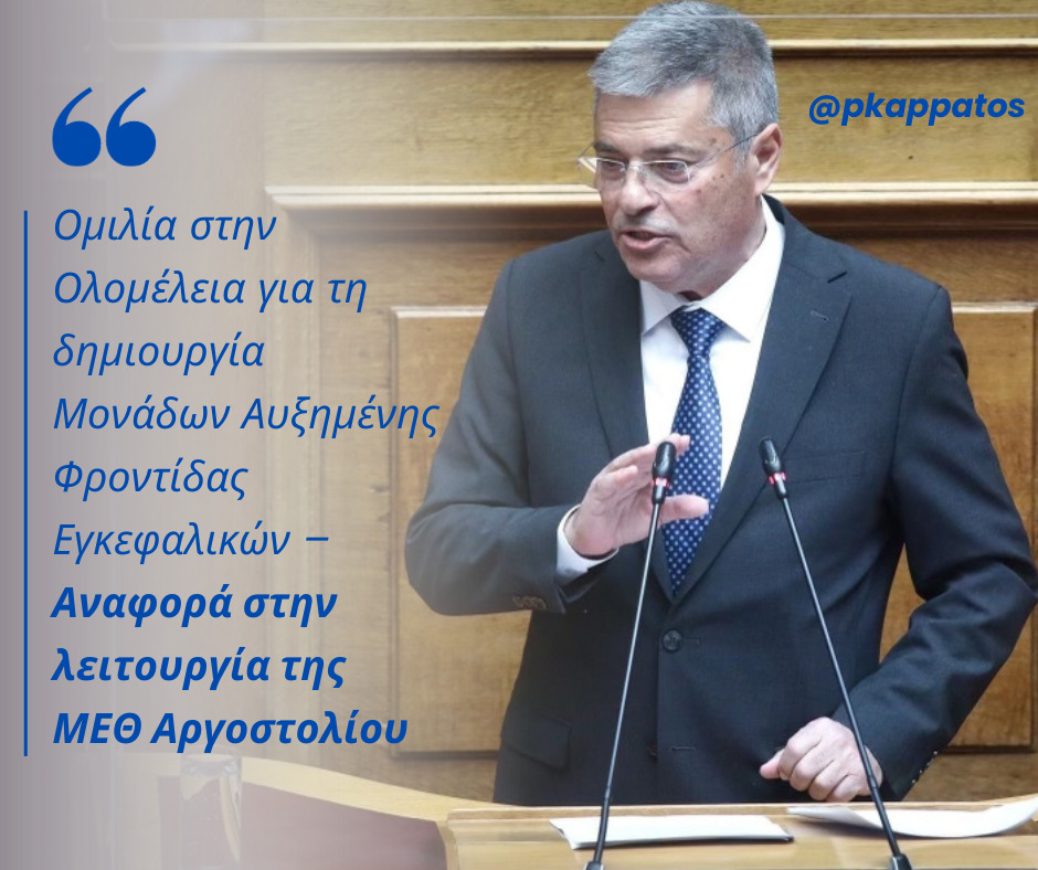 Ομιλία στην Ολομέλεια για τη δημιουργία Μονάδων Αυξημένης Φροντίδας Εγκεφαλικών