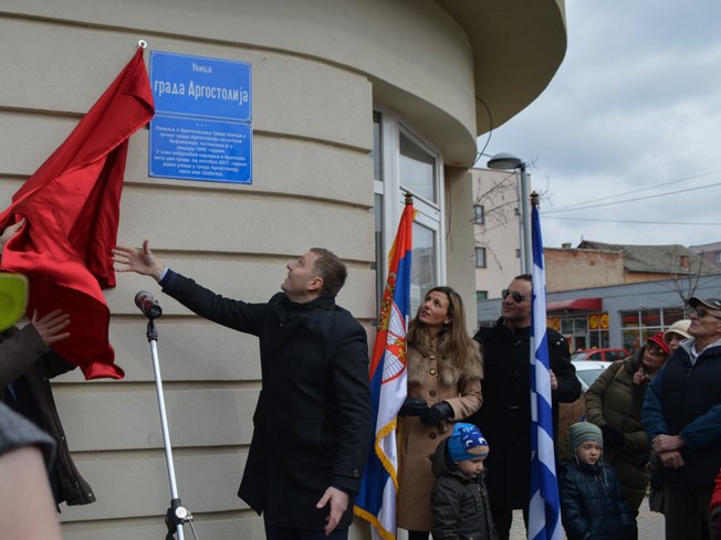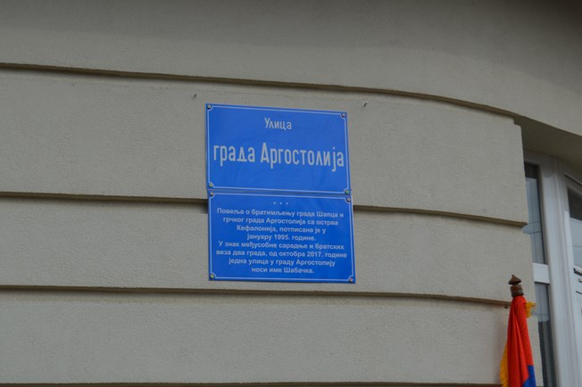 Με μεγάλη επισημότητα και παρουσία του Δημάρχου του Σάμπατς, κ. Nebojsa Zelenovic, και του Επίτιμου Προξένου της Σερβίας στην Κεφαλλονιά, κ. Βίκτωρα Ρουχωτά, πραγματοποιήθηκε σήμερα το μεσημέρι η ονοματοδοσία δρόμου της πόλης του Σάμπτς σε “οδός Αργοστόλι”. Τον Δήμαρχο Κεφαλλονιάς αντιπροσώπευσε ο Πρόεδρος της Κ.Ε.ΔΗ.ΚΕ, κ. Άγγελος Κωνσταντάκης λόγω έκτακτης μετακίνησης του Δημάρχου κ. Παρίση στην Αθήνα.