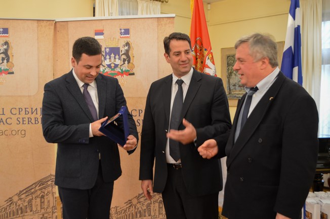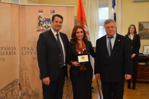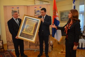 Μετά την τελετή της ονοματοδοσίας, ο Πρόεδρος του Δημοτικού Συμβουλίου του Σάμπατς, κ. Namania Pajic, υποδέχτηκε στον χώρο υποδοχής του Δήμου Σάμπατ, τον κ. Βίκτωρα Ρουχωτά, τον κ. Άγγελο Κωνσταντάκη, τον κ. Γεράσιμο Τιμοθεάτο (Πρόεδρος Ξενοδόχων), τον κ. Κυριάκο Σταμούλη (Επιμελητήριο) και τον κ. Κώστα Γρηγορόπουλο (Αστυνομία) για ανταλλαγή δώρων και συζήτηση για συνεργασία ανάμεσα στις δύο πόλεις σε επίπεδο τουρισμού, πολιτισμού και αθλητισμού.