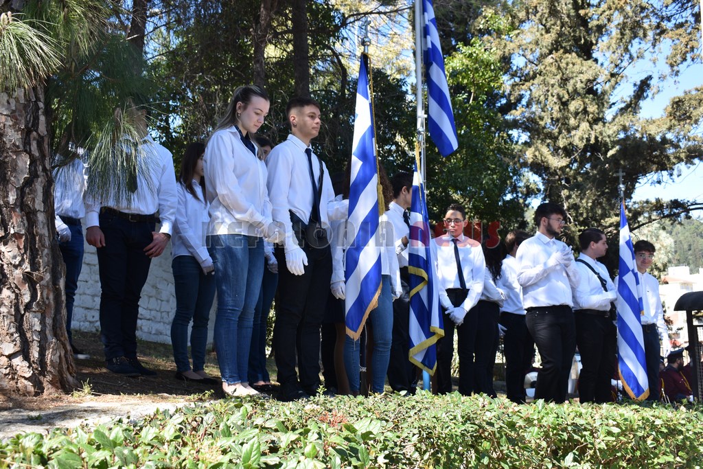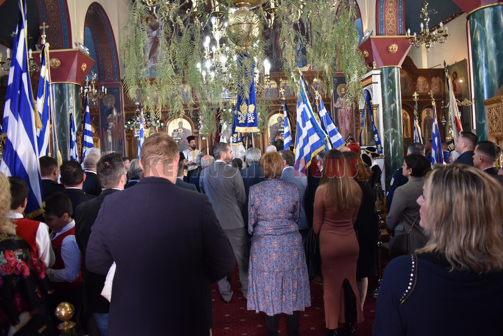 Ο Εορτασμός της 25ης Μαρτίου 1821στο Αργοστόλι. Επίσημη Δοξολογία στον Ιερό Μητροπολιτικό Ναό Ευαγγελιστρίας, χοροστατούντος του Σεβασμιωτάτου Μητροπολίτου Κεφαλληνίας κ.κ. Δημητρίου. Παρέστη όλη η πολιτική ηγεσία και στρατιωτική ηγεσία του τόπου. Τον πανηγυρικό της Ημέρας εκφώνησε η κ. Παρασκευή Κρούσσου, Φιλόλογος, Διευθύντρια του «Πετρίτσειου Γυμνασίου Ληξουρίου».