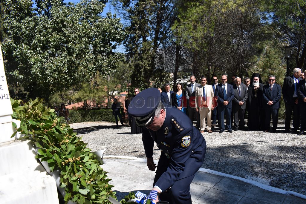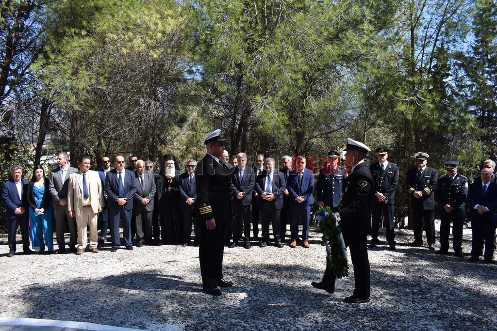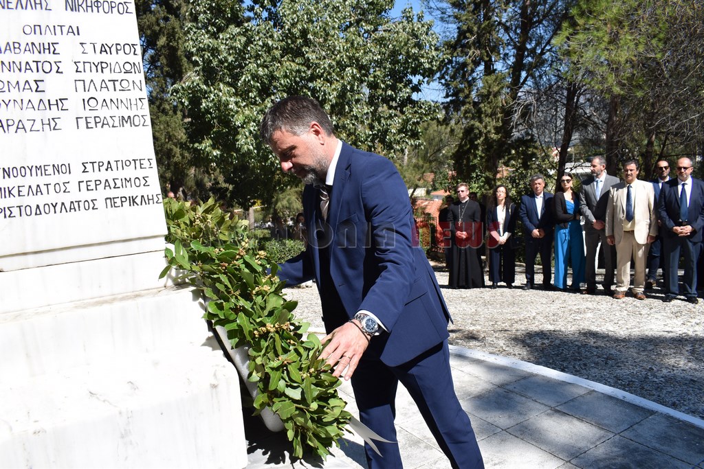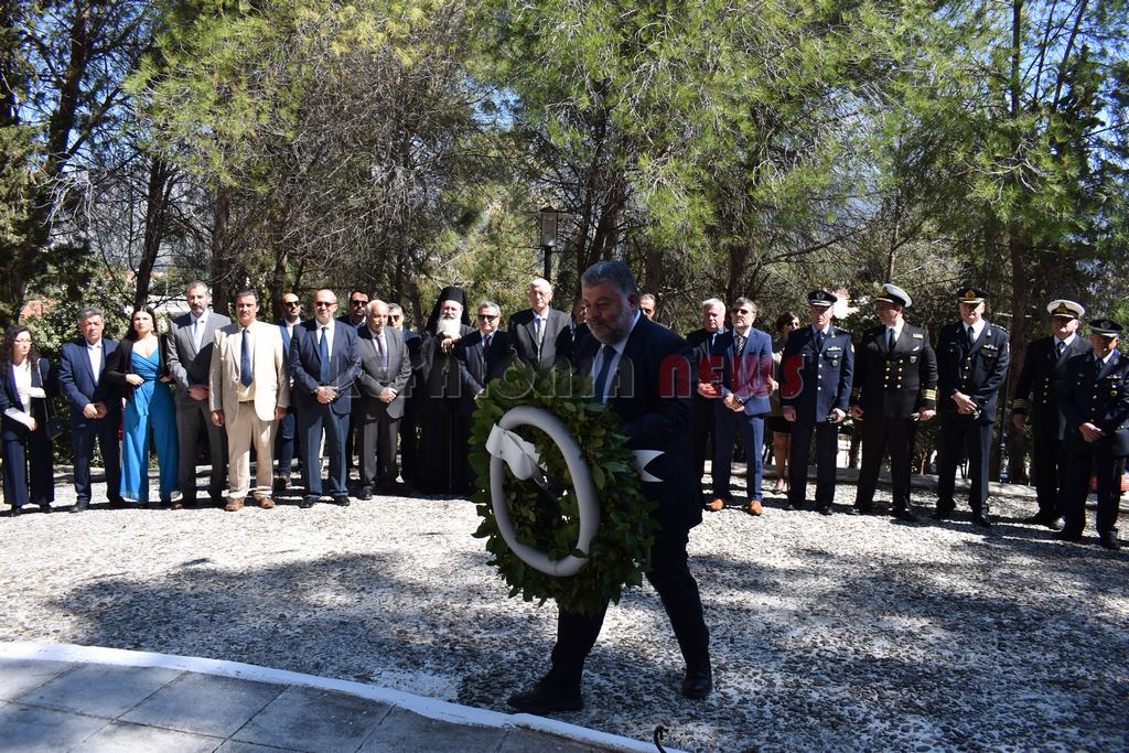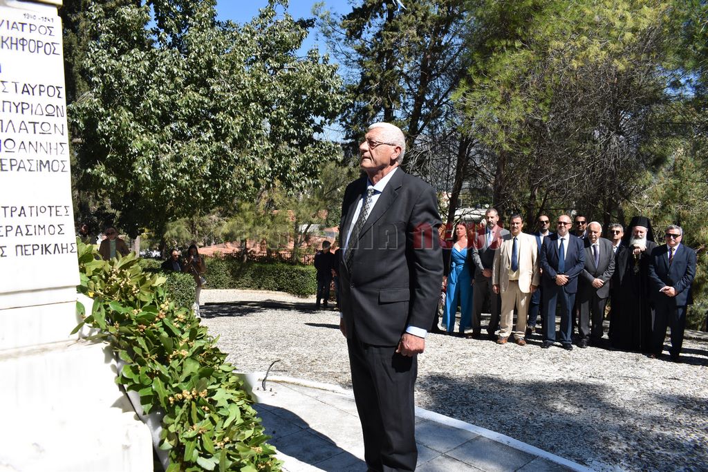 Στη συνέχεια έγινε επιμνημόσυνη Δέηση και κατάθεση στεφάνων στο Μνημείο των Ηρώων στον Κήπο του Νάπιερ από τις Πολιτικές και Στρατιωτικές Αρχές, και τα Πολιτικά Κόμματα και φορείς του Νομού.