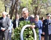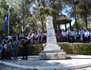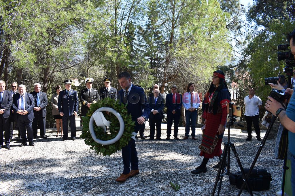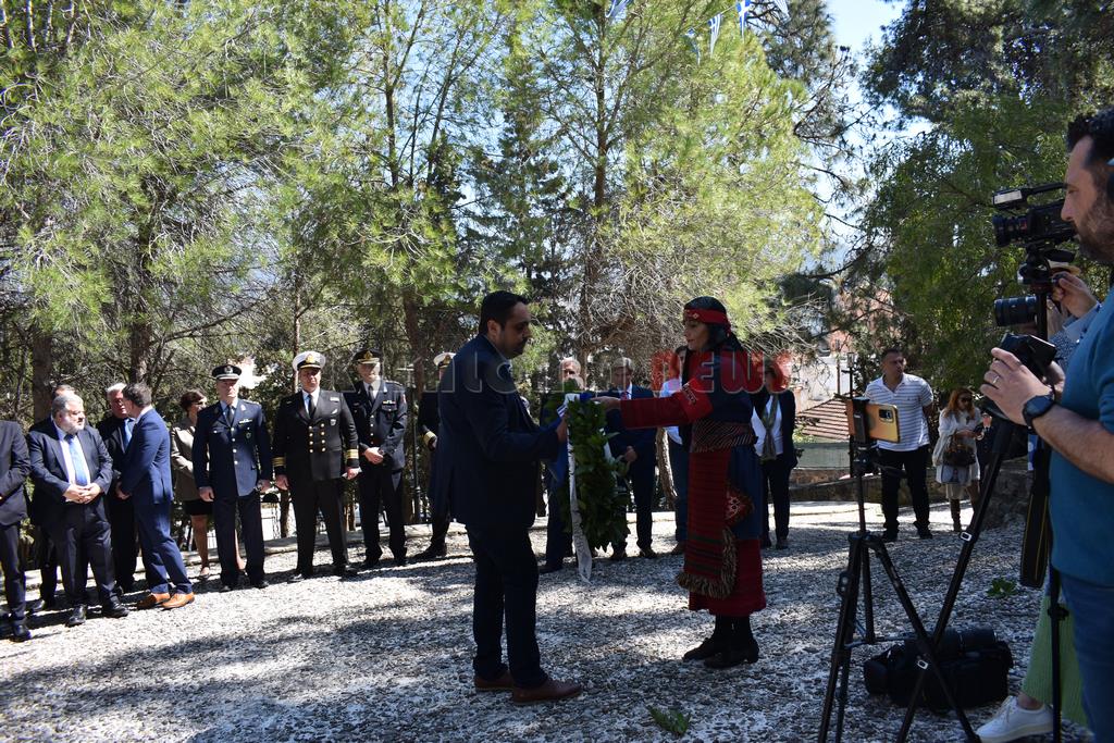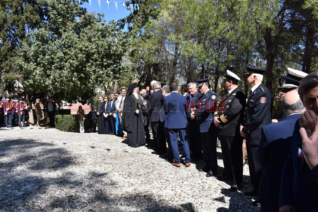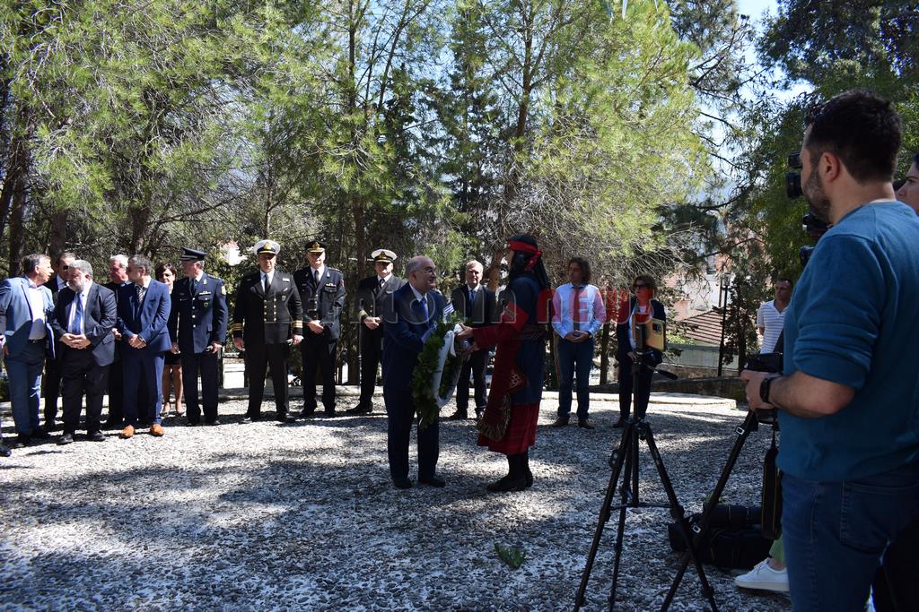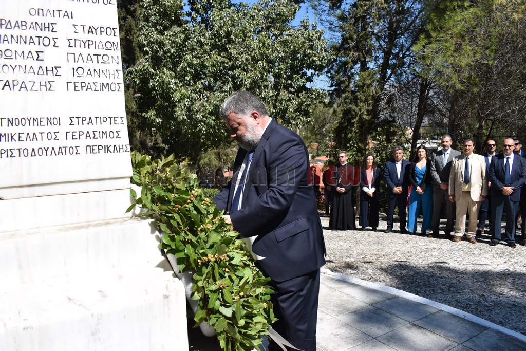 Στη συνέχεια έγινε επιμνημόσυνη Δέηση και κατάθεση στεφάνων στο Μνημείο των Ηρώων στον Κήπο του Νάπιερ από τις Πολιτικές και Στρατιωτικές Αρχές, και τα Πολιτικά Κόμματα και φορείς του Νομού.