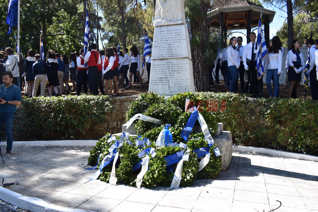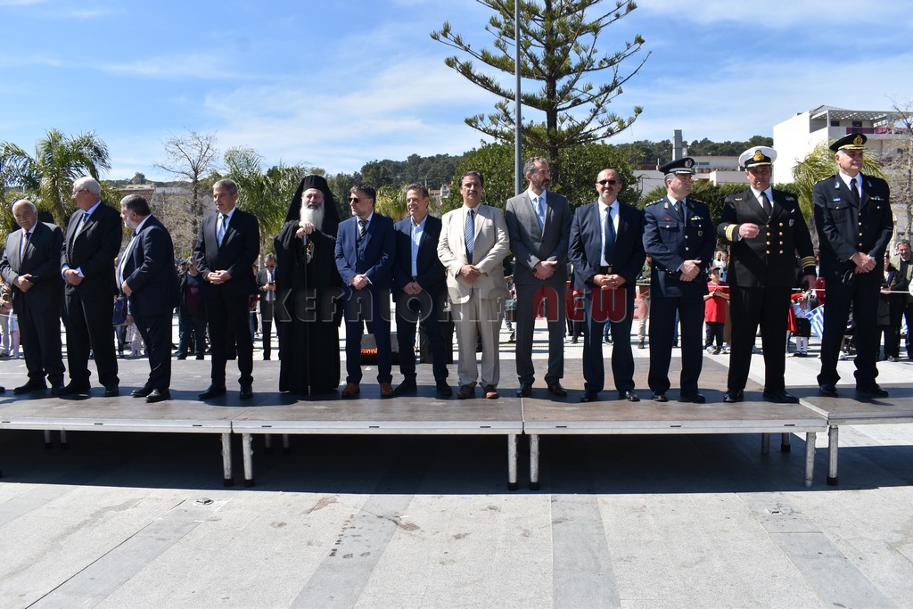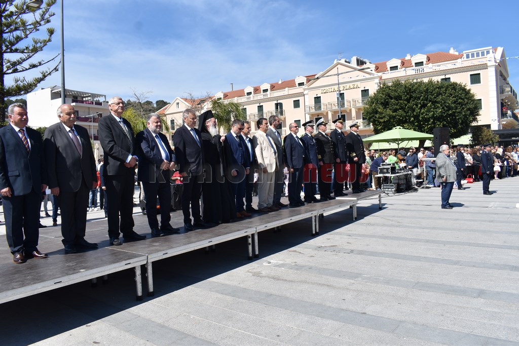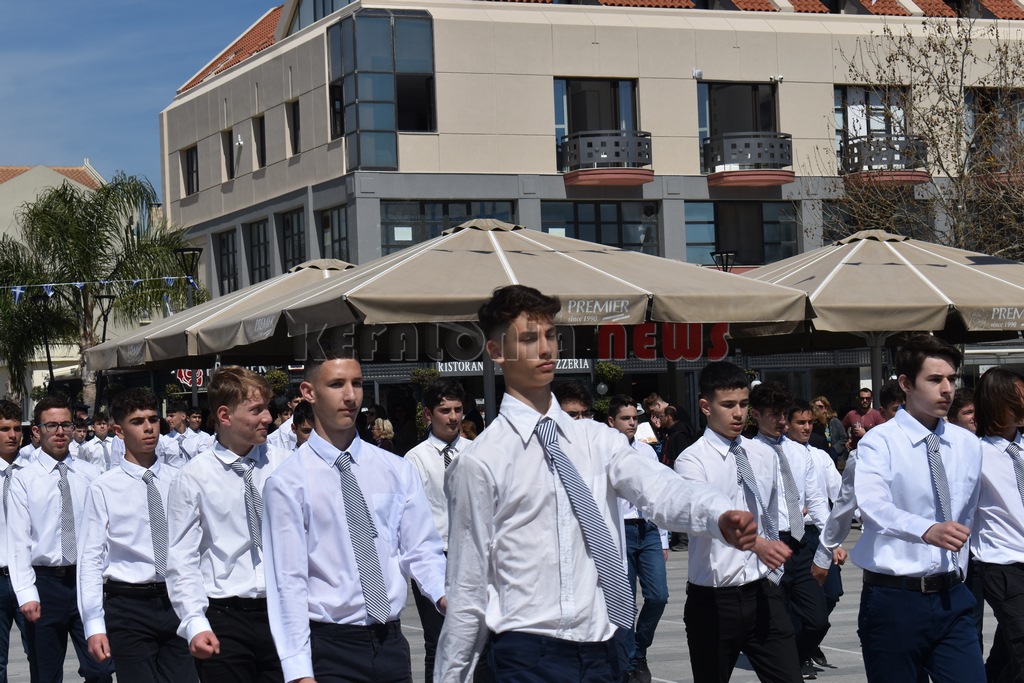 Ακολούθησε η παρέλαση σπουδαστών Α.Ε.Ν., μαθητών Δημοτικών – Γυμνασίων – Λυκείων, Λυκείου των Ελληνίδων – παράρτημα Αργοστολίου, Προσκόπων – Οδηγών και λοιπών φορέων, προ των επισήμων με την συμμετοχή της Φιλαρμονικής Σχολής Κεφαλληνίας και της Φιλαρμονικής του Δήμου Αργοστολίου, στην κεντρική πλατεία της πόλης.