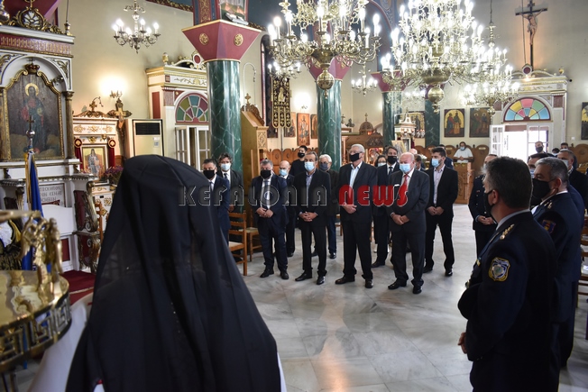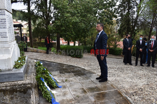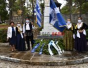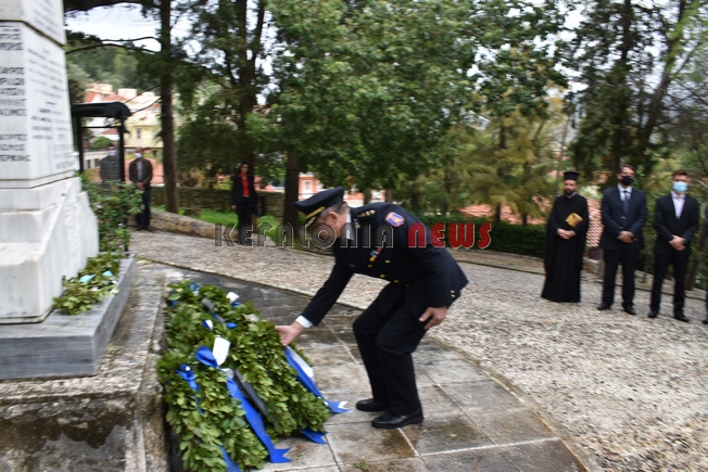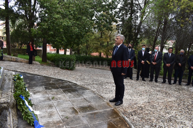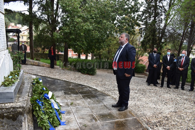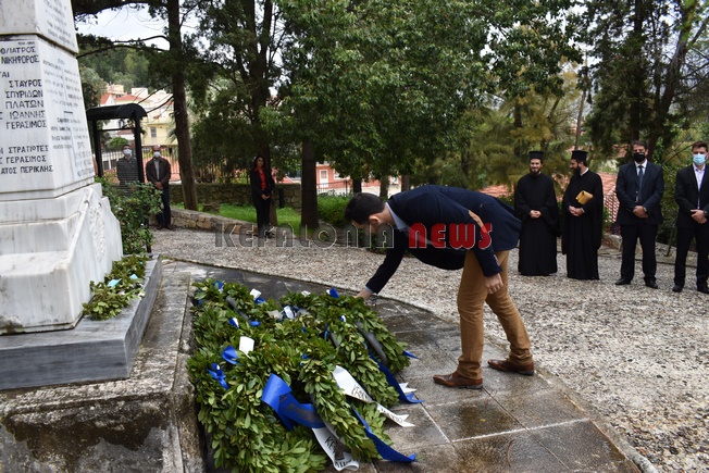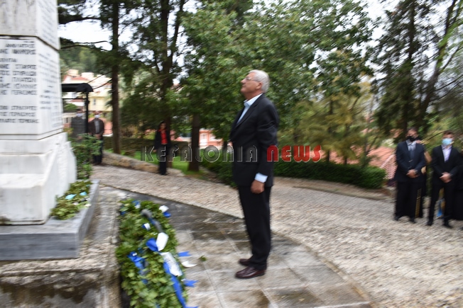 εκπαιδευτικός του 5ου Δημοτικού Σχολείου Αργοστολίου. Παρευρίσκοντο ο αντιπεριφερειάρχης κ. Σταύρος Τραυλός, ο Δήμαρχος Αργοστολίου κ. Θεόφιλος Μιχαλάτος, ο Πρόεδρος του Δ.Σ. κ. Νίκ. Βαλλιανάτος, ο πρώην Δήμαρχος κ. Αλ. Παρίσης, κ.ά. Επίσης εκπρόσωποι όλων των Σωμάτων των Στρατιωτικών Αρχών. Εντύπωση προκάλεσε η απουσία του βουλευτή κ. Παν. Καππάτου, ο οποίος προσήλθε στην κατάθεση στεφανιών.