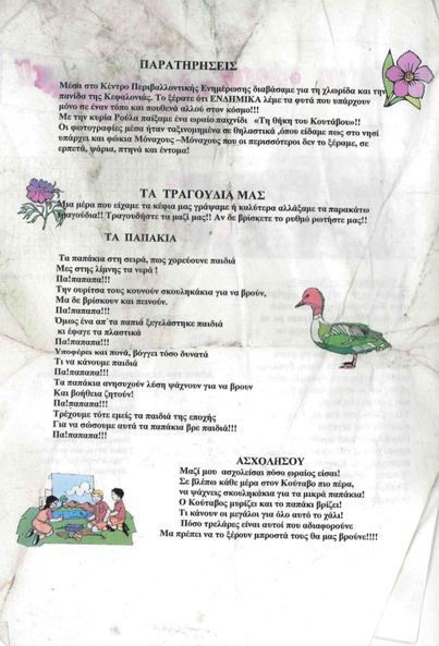 Σας παραθέτουμε την εφημερίδουλα του Δ’ 2 από το 5ο Δημοτικό Σχολείο Αργοστολίου σε μια εκδρομή στον Κούταβο το 2009.