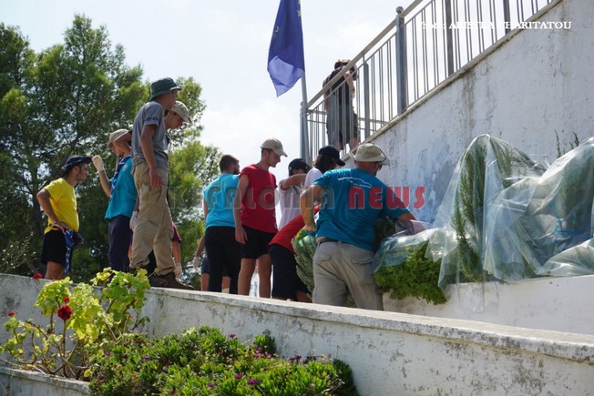 Όπως μας είπε ο κ. Μιχάλης Κατωπόδης, αρχηγός της φετινής δράσης “πρόκειται για μιά Πανελλήνια δράση του Σώματος Ελλήνων προσκόπων στην οποία συμμετέχουν 80 Ανιχνευτές Πρόσκοποι από όλη την Ελλάδα, αγόρια και κορίτσια ηλικίας 17-18 ετών (Γ Τάξης Λυκείου). Στόχος της δράσης αυτής είναι να ολοκληρώσουν την εκπαίδευση τους μέσα από την κοινωνική προσφορά και να συμμετάσχουν μέσα από δράσεις στην Διαδικασία Ανάδειξης Προσκόπων Έθνους. Τόπος συνάντησης μας ήταν το νησί της Κεφαλονιάς. Φτάσαμε την Πέμπτη και αναχωρούμε αύριο Κυριακή 2/9 (ο καθένας για τον προορισμό από τον οποίο ήρθε). Τις δυό πρώτες μέρες της παραμονής μας στο νησί τις περάσαμε στον Εθνικό Δρυμό Αίνου, ενώ σήμερα σειρά είχε η δράση προσφοράς! Οι 80 Ανιχνευτές μαζί με τους 20 Βαθμοφόρους που τους συνοδεύουν μοιράστηκαν σε δυό ομάδες. Έτσι 30-40 άτομα σήμερα Σάββατο πρόσφεραν εθελοντικές εργασίες στον Ναό των Σβορωνάτων ενώ οι υπόλοιποι ήρθαμε στο Κέντρο Διημέρευσης και ημερήσιας φροντίδας ατόμων με αναπηρία, όπου με την στήριξη του Αντιπεριφερειάρχη Κεφαλονιάς κ. Δρακουλόγκωνα, συμμετέχουμε σε εργασίες φρεσκαρίσματος στον εξωτερικό χώρο”
