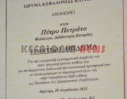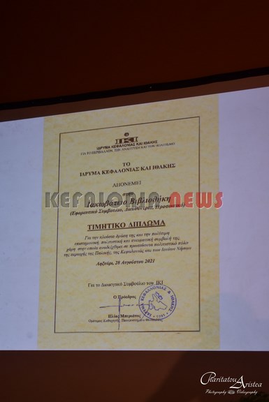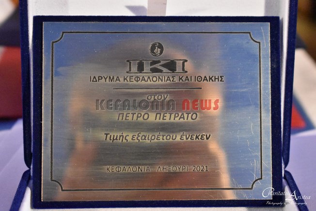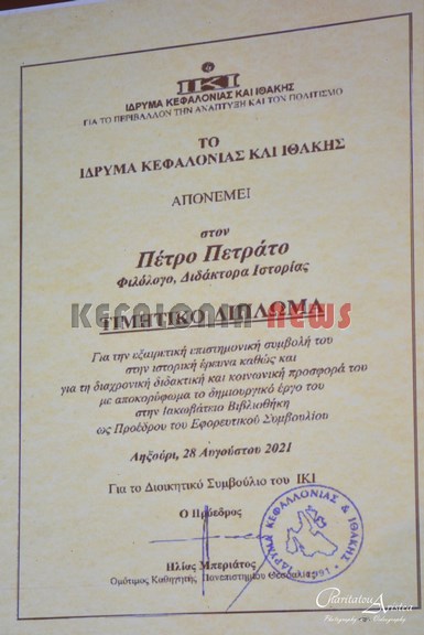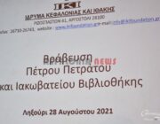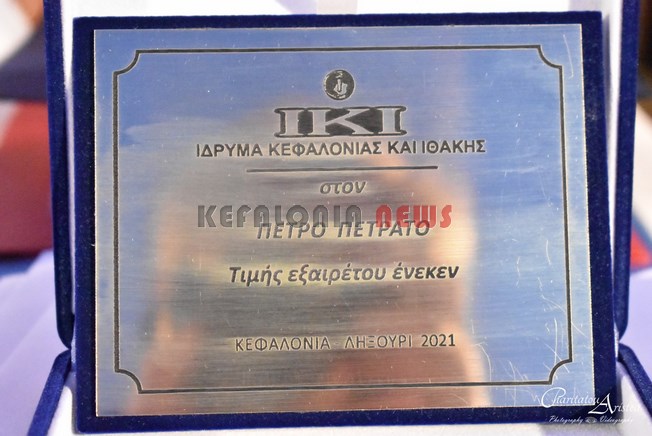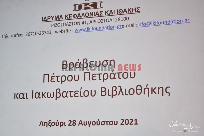 Το Ίδρυμα Κεφαλονιάς και Ιθάκης, ο Πρόεδρος του Ιδρύματος κ. Ηλίας Μπεριάτος και το ΔΣ, χθες βράδυ σε μιά πολύ συγκινητική εκδήλωση βράβευσαν τον Πέτρο Πετράτο για την τεράστια προσφορά του και την Ιακωβάτειο Βιβλιοθήκη μέσω της διεύθυντριας της βιβλιοθήκης μας, κα Θεοδώρα (Δώρα) Ζαφειράτου.