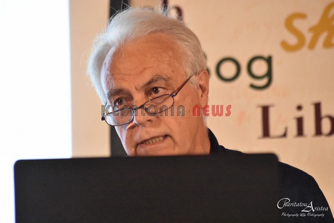 Λίγο πριν ο κ. Μπεριάτος απονείμει τιμητική πλακέτα στον Π. Πετράτο, τον λόγο παίρνει ο Πρόεδρος του Συνδέσμου Φιλολόγων Κεφαλονιάς-Ιθάκης κ. Δημήτρης Ζαβιτσιάνος, ο οποίος μέσα από μιά σειρά διαφανειών μίλησε για το συγγραφικό έργο του Π. Πετράτου, αλλά και για τις ιδέες και προτάσεις που είχε ανα διαστήματα ο ανήσυχος Πέτρος Πετράτος και που κατάφερε με επιμονή, υπομονή και σχεδιασμό να πετύχει.