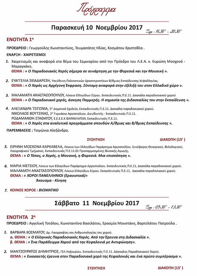 “Ο Παραδοσιακός Χορός σε συνάρτηση με την Μουσική και την Φορεσιά”.