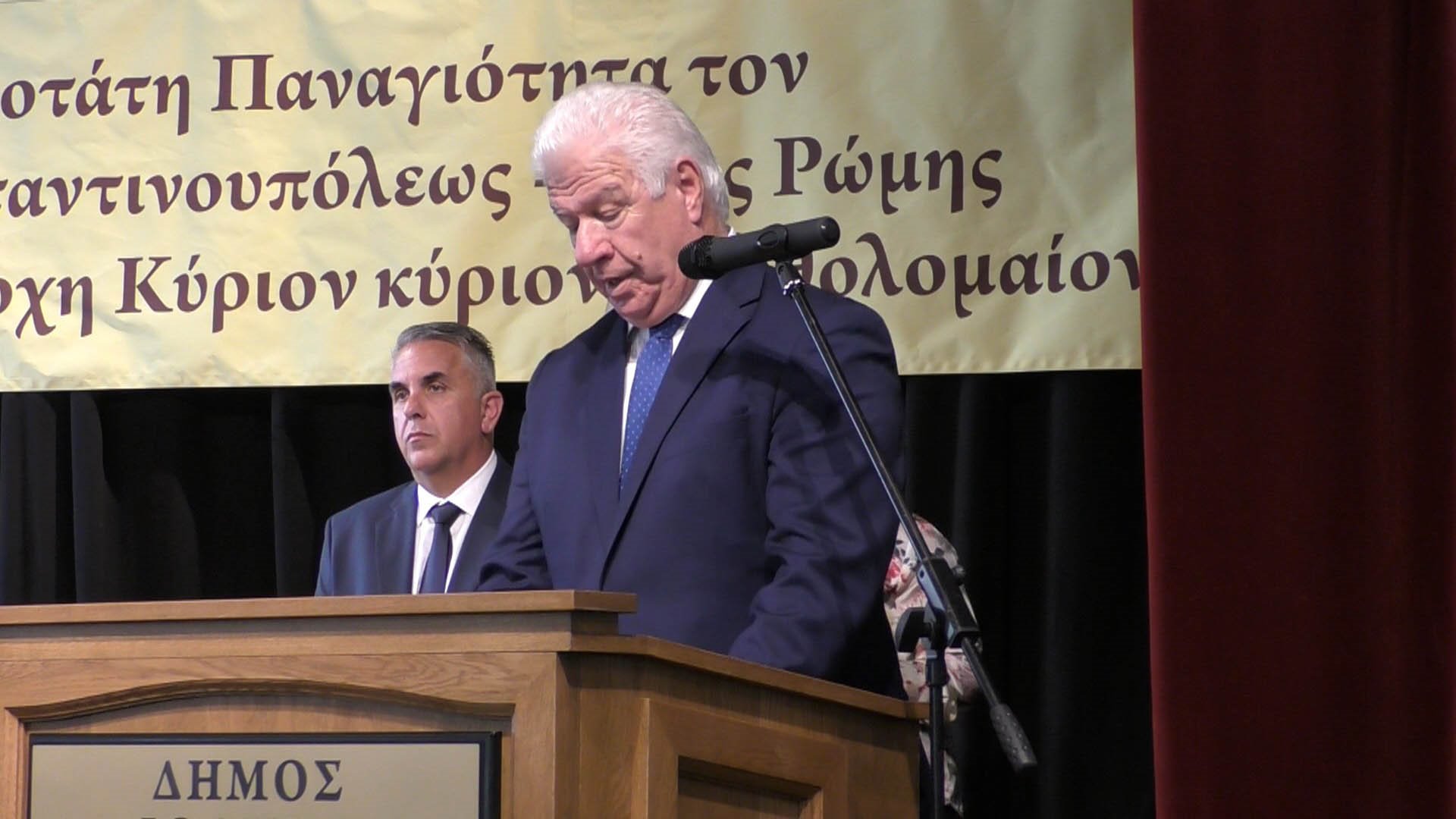Η επίσκεψη του Οικουμενικού Πατριάρχη κκ. Βαρθολομαίου στο νησί της Ιθάκης περιποιεί ύψιστη τιμή και ευλογία για τους Ιθακησίους, τους απανταχού Ιθακησίους. Η, από την πλευρά του Παναγιωτάτου, αναγνώριση της προσφοράς του νησιού μας στον Ελληνορθόδοξο πολιτισμό θα είναι πάντοτε για όλους εμάς, ιδιαίτερα για εμάς που φέρουμε την ευθύνη της εκπροσώπησής σας, λόγος πνευματικός και, βαθύτατα, εγερτικός της συναίσθησης του σταθερού και αδιαπραγμάτευτου χρέους μας να ενώνουμε, να γεφυρώνουμε τις αντιθέσεις και να κοιτάμε μπροστά με πλοηγό αποκλειστικά και μόνον την διασφάλιση της ιστορικής παρουσίας ενός νησιού, το οποίο «διαμόρφωσε την ιστορία» ήδη από την προϊστορία. Στο σεπτό Πρόσωπο του Παναγιωτάτου, τιμήσαμε τον Άνθρωπο, τον Πνευματικό Ηγέτη που χάρασσε και χαράσσει «γοητευτικές διαδρομές» στην πορεία όλων μας να κατακτήσουμε το «περαιτέρω». Γι’ αυτό και είμαι ιδιαίτερα ευτυχής ως Δήμαρχος του νησιού μας, διότι η Ιθάκη μας έχει ως Επίτιμο Δημότη τον Οικουμενικό μας Πατριάρχη, Εκείνον που έχει καταστήσει σε επιλογή βίου το πανανθρώπινο μήνυμα του «νόστου», κατάκτηση και προοπτική της ομηρικής Ιθάκης Του «νόστου» των αρετών, των αξιών αλλά και των υψηλών ανθρωπιστικών συμβολισμών. Σας ευχαριστώ όλους για την συμβολή και την παρουσία σας στην σεμνή αυτήν τελετή. Ο Δήμαρχος Ιθάκης Διονύσιος Γ. Στανίστας