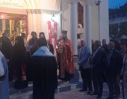 Στο πλαίσιο της παρουσίας του στη Κεφαλονιά ο Περιφερειάρχης Ιονίων Νήσων το Σάββατο 18 Μαΐου, παρακολούθησε τον Μέγα Αρχιερατικό Εσπερινό και στη συνέχεια ακολούθησε τη λιτάνευση των ιερών λειψάνων των Αγίων Ομολογητών Φανέντων στη Σάμη.