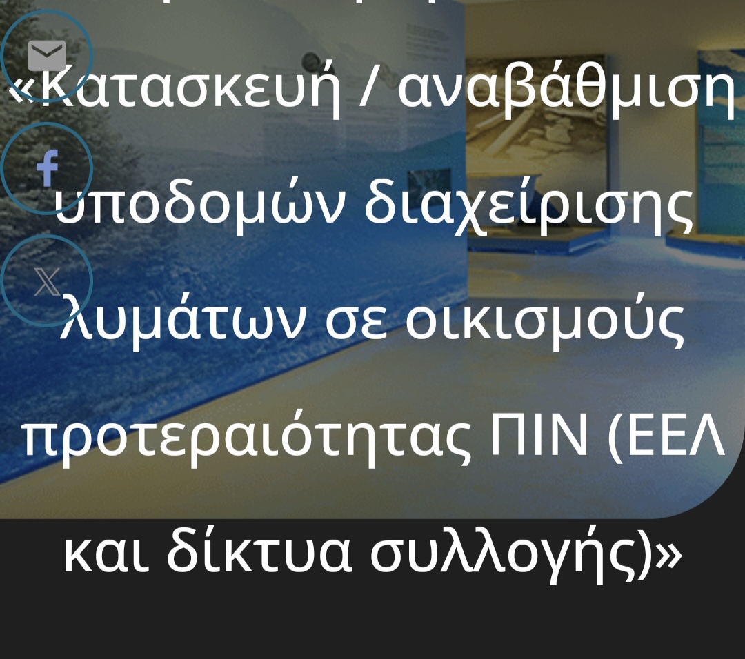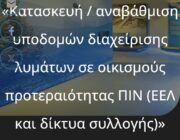 – Τιτλος:” Κατασκευή και Αναβάθμιση Υποδομών Διαχείρισης λυμάτων σε οικισμούς προτεραιότητας Π.Ι.Ν.:(ΕΕΛ και δίκτυα Συλλογής).