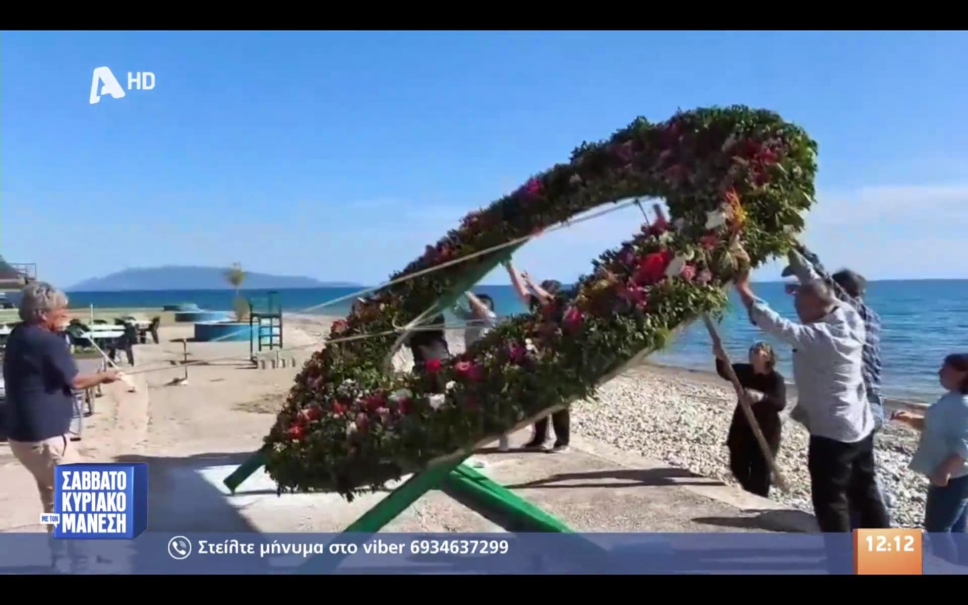 Τα θερμά συγχαρητήρια μας στη δραστήρια Πρόεδρο Ασπασία Σεριάτου, τον πολυμήχανο Χαράλαμπο Κουρκουμέλη (ο ευφυής “μηχανικός” των δημιουργημάτων του “Πρόνησου”) καθώς και σ’ όλα τα υπόλοιπα ακούραστα μέλη του Πολιτιστικού Συλλόγου του Πόρου Κεφαλονιάς “Ο Πρόνησος” που  νωρίτερα σήμερα το πρόσφατο μηχανικό επίτευγμα τους για την Πρωτομαγιά (το διαμέτρου 4 μέτρων στεφάνι του Μάη) δεν έμεινε χωρίς τους άξιους επαίνους από την αγαπημένη μας τηλεοπτική εκπομπή του συμπατριώτη μας παρουσιαστή Νίκου Μάνεση “Σαββατοκύριακο με τον Μάνεση” στον Alpha!