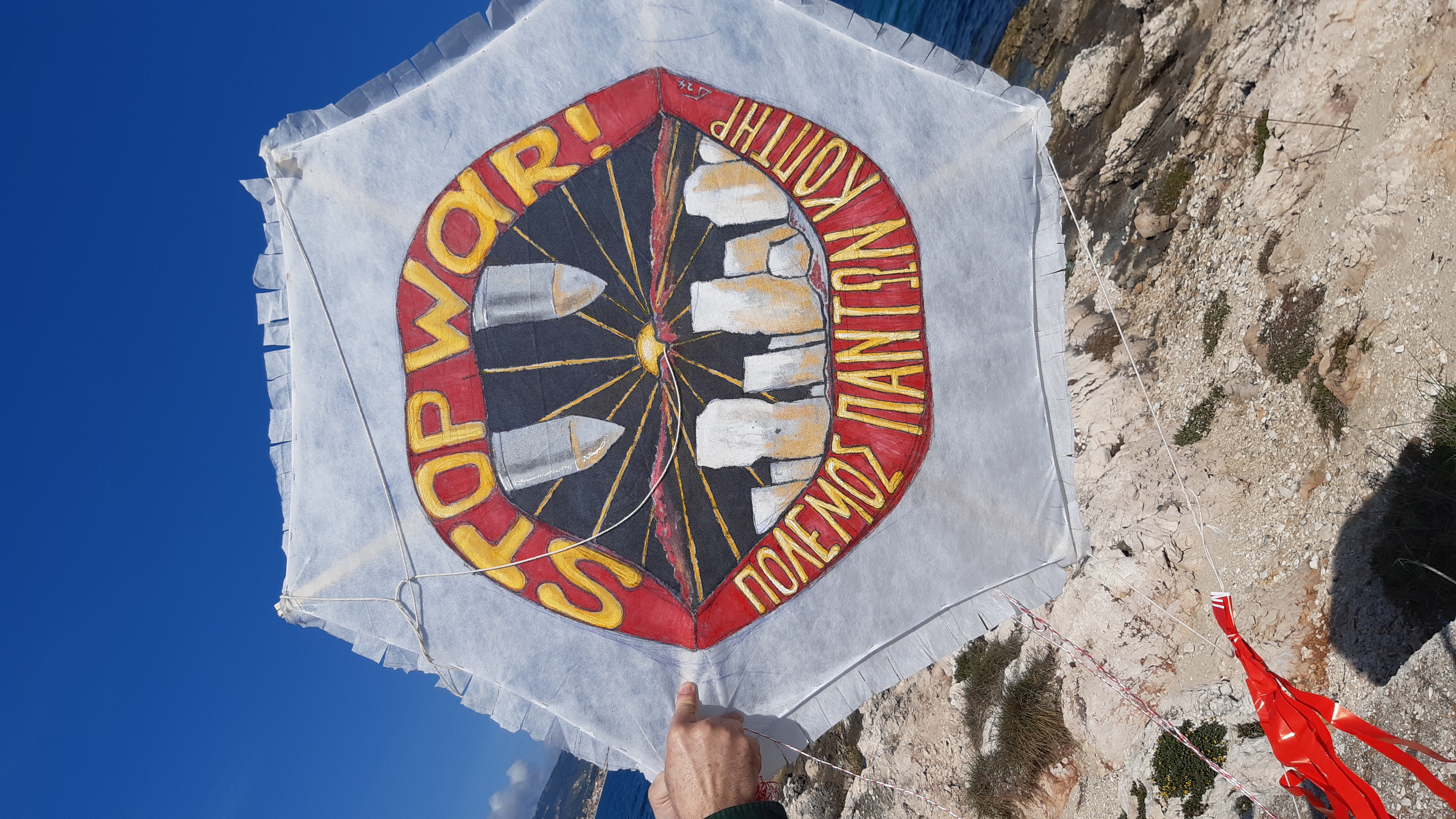 Ούριος ο άνεμος σήμερα για τον χαρταετό του Οδοντιατρικού Συλλόγου Κεφαλληνίας και τις ιδέες που προωθεί. Παραφράζοντας τον Ηράκλειτο («Πόλεμος πάντων πατήρ») και μεταφέροντας σε ανώτερη κλίμακα εικόνες φθοράς, από αυτές που συναντάμε κάποτε κατά την άσκηση των καθηκόντων μας, διακηρύσσουμε την αντίθεσή μας στον πόλεμο. Ο πόλεμος καταστρέφει καθετί ζωντανό και ωραίο και διακόπτει κάθε προοπτική ευημερίας και προόδου. Διατηρούμε την ελπίδα ότι πέρα από τον ορίζοντα της καταστροφής και τους καπνούς του ολέθρου, αχνοφέγγει ήλιος ειρήνης και ευτυχίας, στον οποίο πρέπει να στρέψει τις ελπίδες του κάθε νοήμων άνθρωπος.