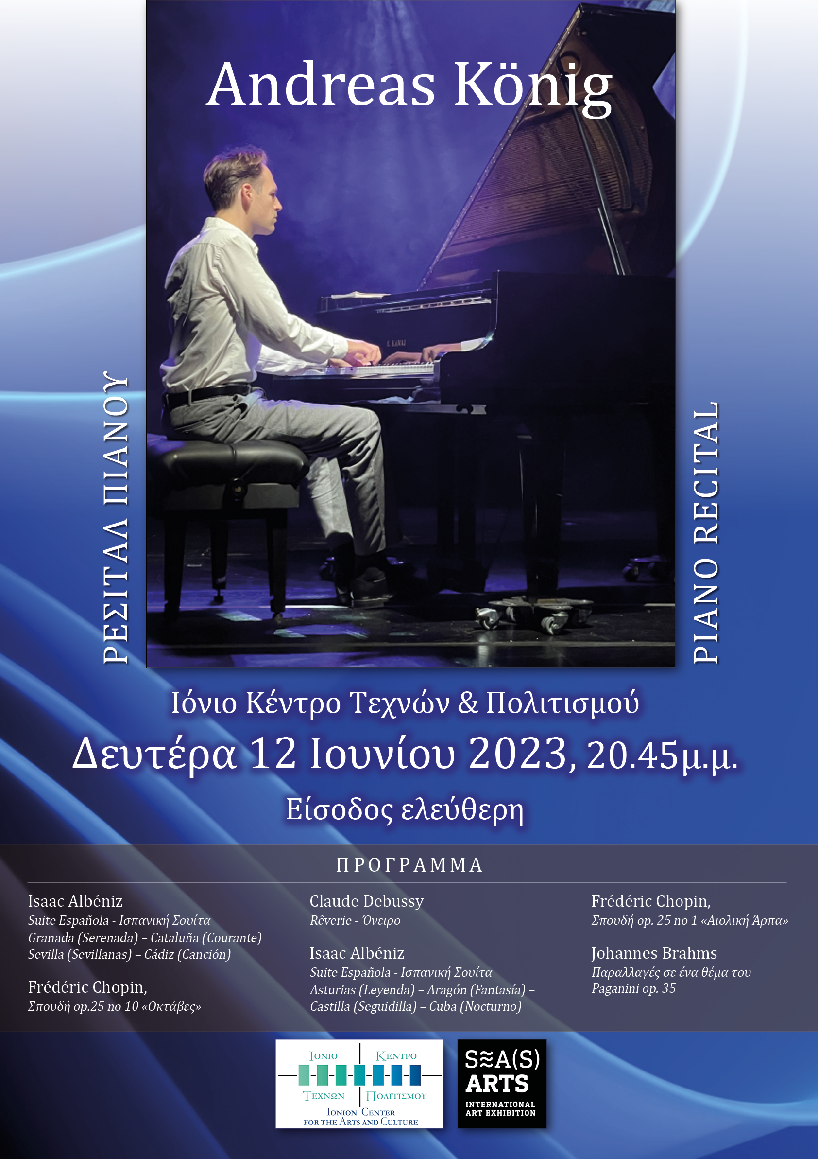 Ο Andreas König τιμά εκ νέου το κοινό της Κεφαλονιάς με ένα μοναδικό ρεσιτάλ πιάνου, που θα λάβει χώρα στο Ιόνιο Κέντρο Τεχνών & Πολιτισμού στα Μεταξάτα, Δευτέρα 12 Ιουνίου και ώρα 20.45 μ.μ.