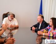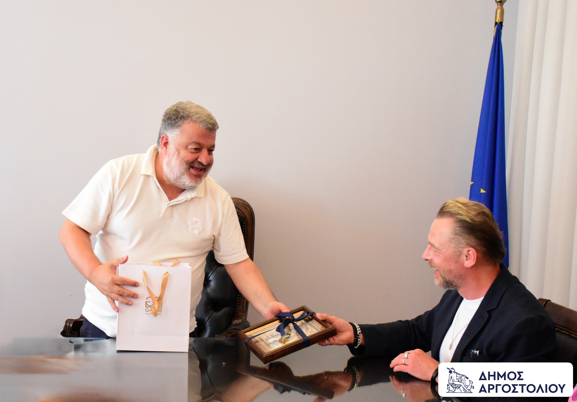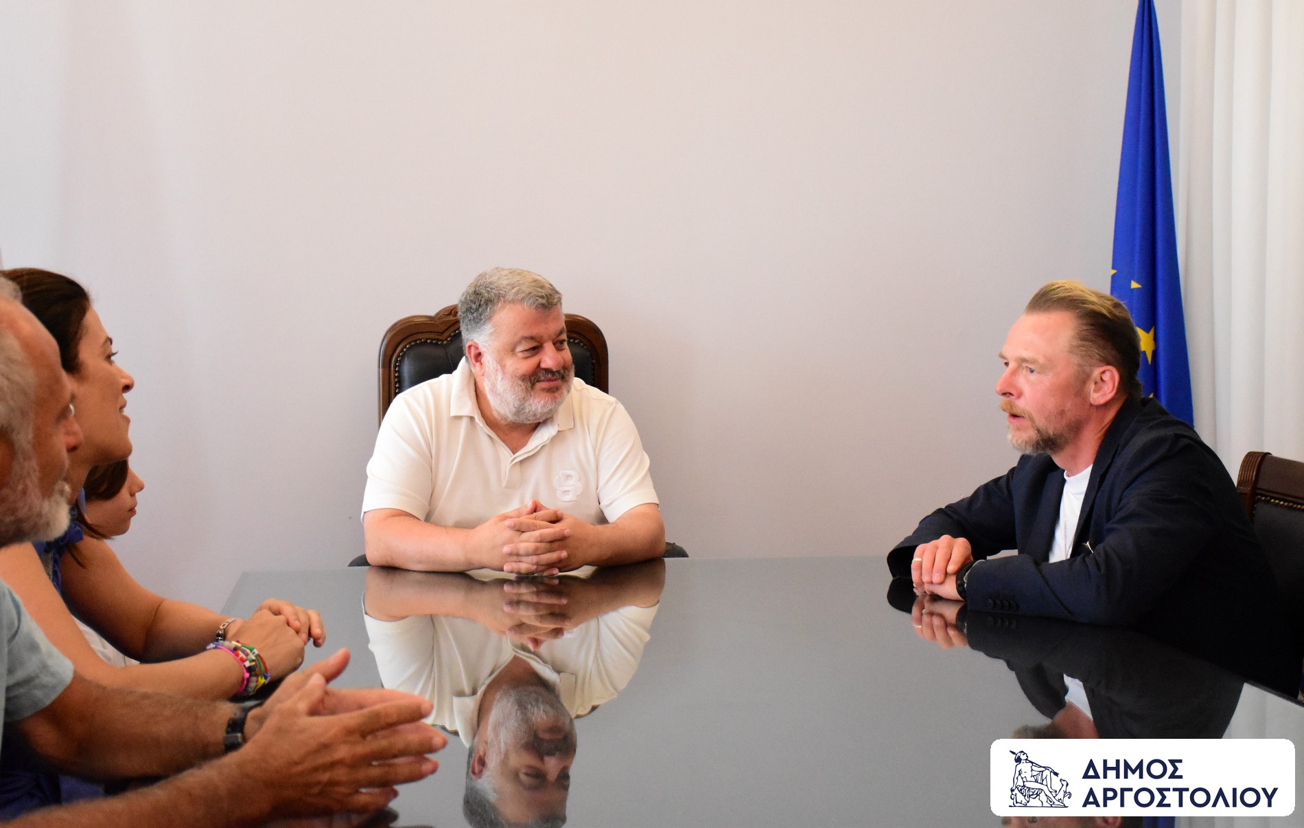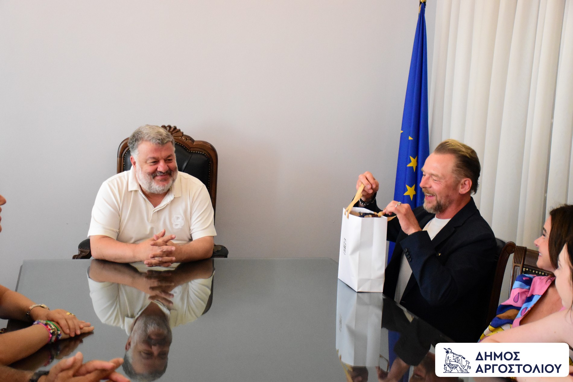 Με πολλή χαρά ο Δήμαρχος Αργοστολίου κ. Θεόφιλος Μιχαλάτος, υποδέχθηκε στο γραφείο του, την Δευτέρα 14 Ιουλίου 2025, τον διεθνώς αναγνωρισμένο Βρετανό ηθοποιό και σεναριογράφο, μαζί με τον Αντιδήμαρχο Τουρισμού, κ. Νίκο Κουρκουμέλη, και την Υπεύθυνη Δημοσίων Σχέσεων της Τουριστικής Επιτροπής κ. Μαρίνα Βεργωτή.