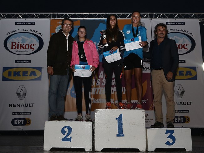Στις γυναίκες πρώτη αναδείχθηκε η Άρτεμις Ντούσκου (Ν.Ο. Ιωαννίνων) με χρόνο 18΄ 54΄΄, δεύτερη η Αφροδίτη Σιώλου (Ν.Ο.Ι.) με χρόνο 20΄ 23΄΄ και τρίτη η Παναγιώτα Ασημακοπούλου με χρόνο 21΄18΄΄.