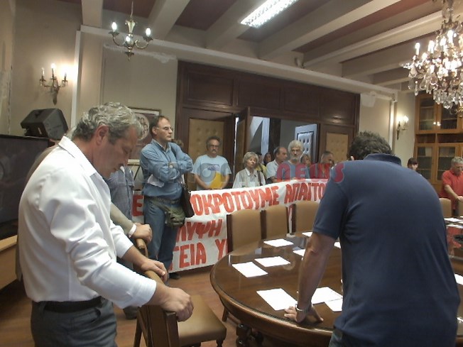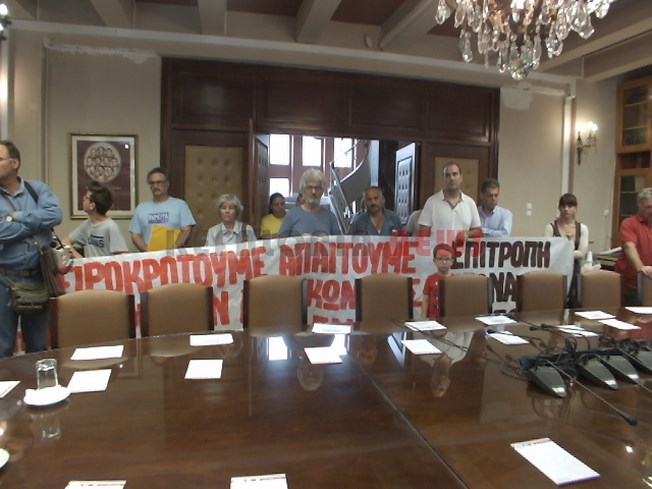 Ακριβώς μετά τη λήξη των εγκαινίων του σχολικού συγκροτήματος στον Φαραώ, η Επιτροπή Αγώνα Φορέων έκανε μαζική παρέμβαση στην Περιφέρεια, στον αντιπεριφερειάρχη Π. Δρακουλόγκωνα και τον αντιπεριφερειάρχη τουρισμού Σπ. Γαλιατσάτο.