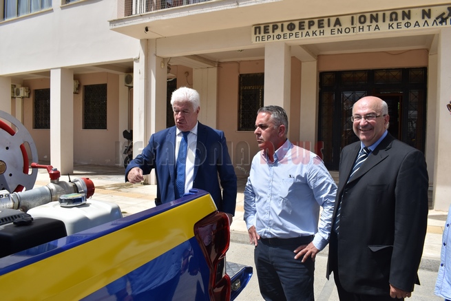 Σήμερα το πρωί στον χώρο μπροστά από το κτίριο της ΠΕ ΚΕΦΑΛΛΗΝΙΑΣ ΚΑΙ ΙΘΑΚΗΣ οι Δήμοι της Κεφαλονιάς παρέλαβαν τέσσερα πυροσβεστικά αυτοκίνητα προερχόμενα από το Ευρωπαϊκό πρόγραμμα «Λαέρτης» .
