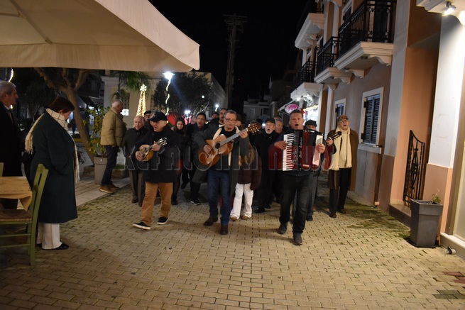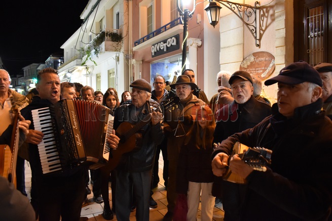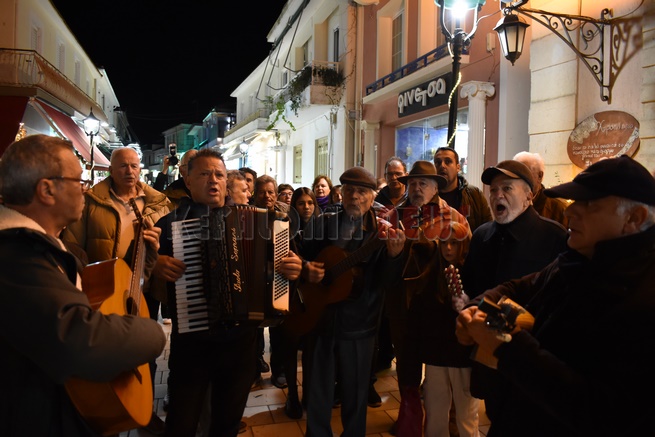 Όπως κάθε χρόνο παραμονή Χριστουγέννων στο Λιθόστρωτο διάφορα συγκροτήματα και χορωδίες κάνουν την περατζάδα τους. Η Φιλαρμονική του Δήμου “Διονύσης Λαυράγκας” υπό τη διεύθυνση του Βασίλη Περλικίδη αλλά και η Χορωδία Αργοστολίου με κάλαντα και καντάδες “περπάτησαν” στο Λιθόστρωτο σκορπίζοντας ήχους και νότες από μουσικές του “συνοδεύουν” την ατμόσφαιρα των εορτών. Δυστυχώς ήταν μικρή η συμμετοχή. Παρουσιάστηκε μόνο έξω από τον Άγιο Σπυρίδωνα η Χορωδία του Δήμου και μετά ….εξαφανίστηκε.