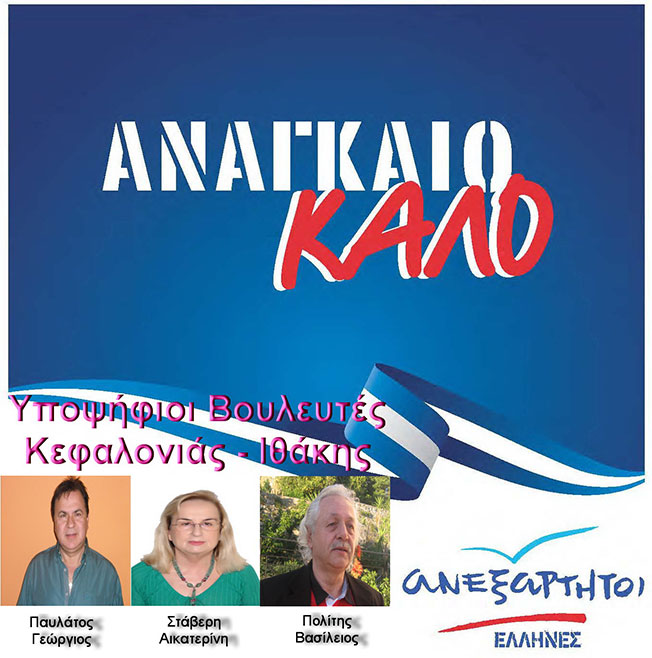 Σας ενημερώνουμε για την πλήρωση του ψηφοδελτίου των Ανεξαρτήτων Ελλήνων για την Κεφαλονιά & Ιθάκη.
