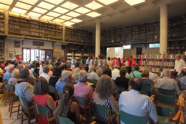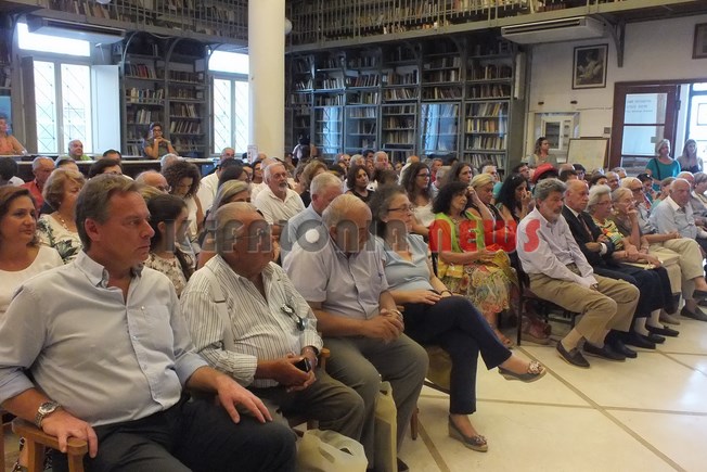 Καρφίτσα να έριχνες στην αίθουσα της Κοργιαλένειου Βιβλιοθήκης δεν θα έπεφτε κάτω από τον κόσμο που την κατέκλυσε για να παρακολουθήσει την παρουσίαση του βιβλίου της Υβόννης Μαρκαντωνάτου. Δεν ήταν μόνο από το Αργοστόλι, ήταν απ’ όλη την Κεφαλονιά, από την Έρρισο, τη Σάμη, τον Πόρο.