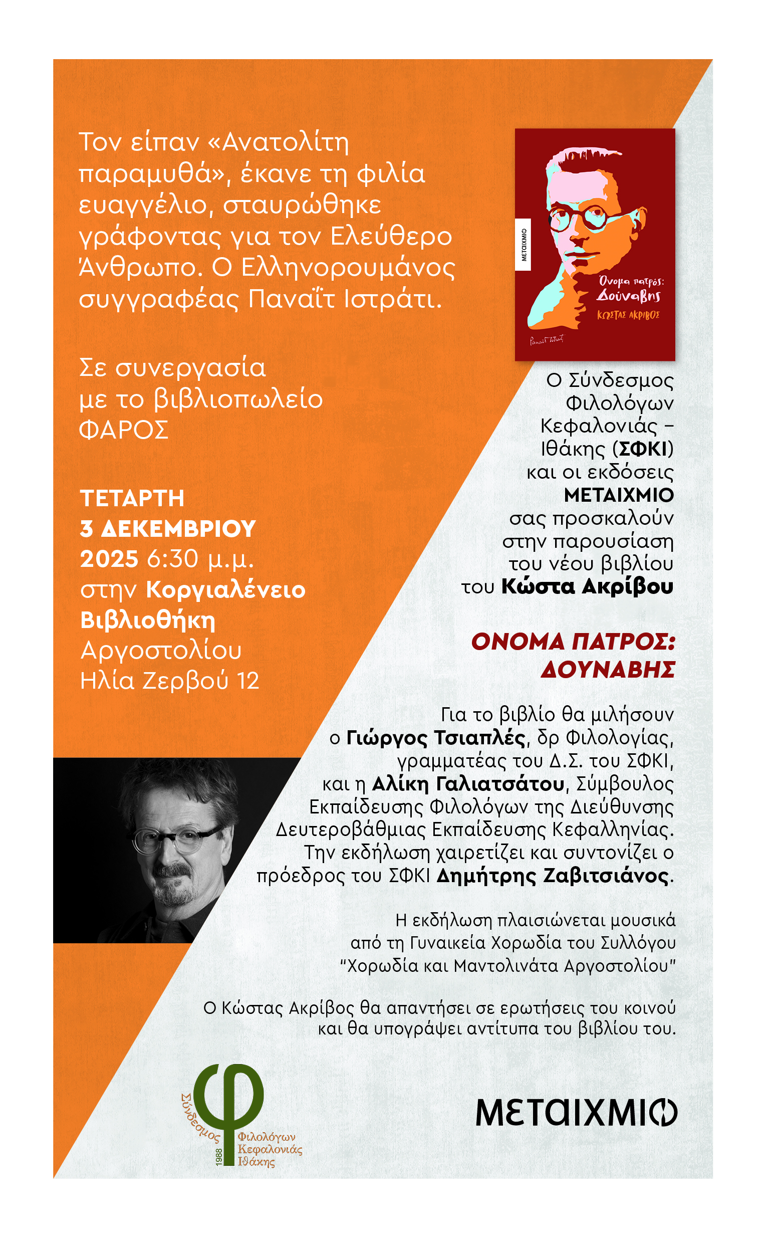 ΠΑΡΟΥΣΙΑΣΗ ΒΙΒΛΙΟΥ ΚΩΣΤΑ ΑΚΡΙΒΟΥ ΓΙΑ ΤΟΝ ΠΑΝΑΙΤ ΙΣΤΡΑΤΙ