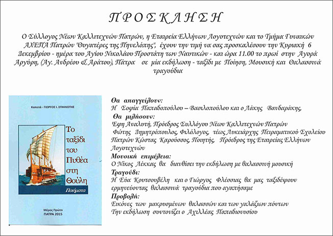 ΠΑΡΟΥΣΙΑΣΗ ΒΙΒΛΙΟΥ “ΤΟ ΤΑΞΙΔΙ ΤΟΥ ΠΥΘΕΑ ΣΤΗ ΘΟΥΛΗ”