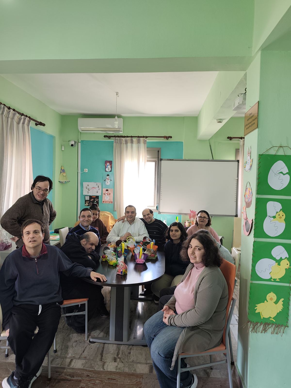 Μαζί με τους ωφελούμενούς μας, υλοποιήσαμε μια σειρά από πασχαλινές δράσεις γεμάτες αγάπη, συμμετοχή και συνεργασία. Βάψαμε αυγά με φαντασία και έντονα χρώματα, παρασκευάσαμε παραδοσιακά πασχαλινά κουλούρια, δημιουργήσαμε όμορφες χειροτεχνίες, ενώ παράλληλα γνωρίσαμε την ιστορία και τα έθιμα του Πάσχα μέσα από την ανάγνωση σχετικών βιβλίων. Επιπλέον, συμμετείχαμε με κατάνυξη στον εκκλησιασμό των ημερών.