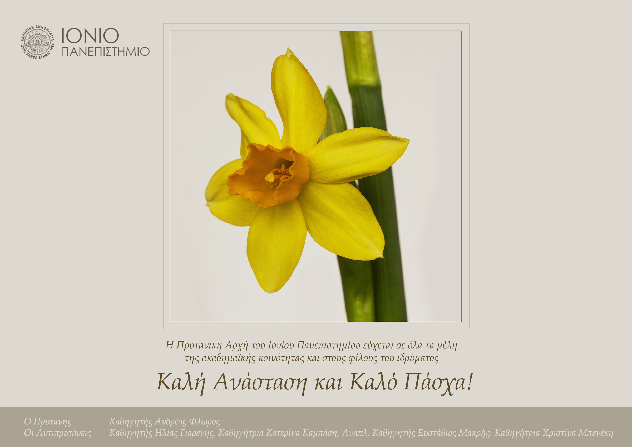 Πασχαλινές Ευχές εκ μέρους της Πρυτανικής Αρχής του Ιονίου Πανεπιστημίου
