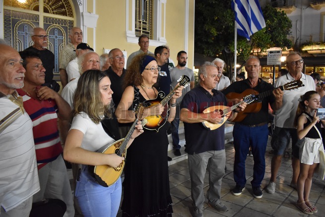 Η Χορωδία Αργοστολίου , με μαντολίνα , κιθάρες και ακορντεόν , και κερνώντας …μάντολες , γνώρισε στους επισκέπτες του νησιού μας , με γλυκό τρόπο , τις Κεφαλονίτικες καντάδες και τον παραδοσιακό τρόπο τραγουδιού και ψυχαγωγίας του νησιού μας!!!!