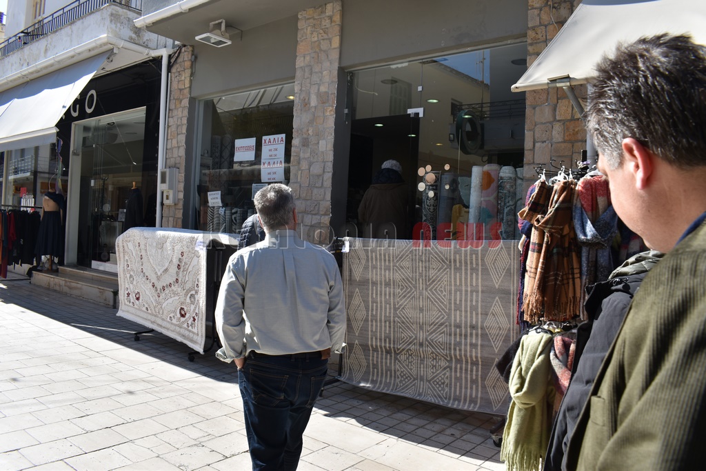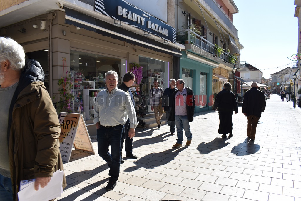 Περιοδεία στα μαγαζιά στο Λιθόστρωτο του υποψήφιου του ΚΚΕ Γιάννη Ντουνιαδάκη.