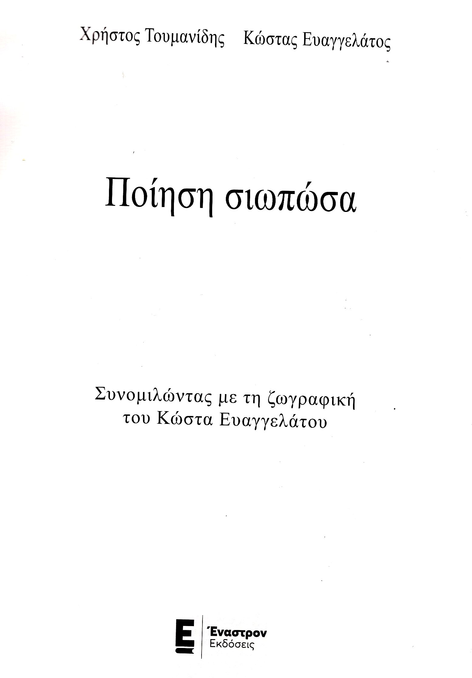 “ΠΟΙΗΣΗ ΣΙΩΠΩΣΑ” ΧΡΗΣΤΟΣ ΤΟΥΜΑΝΙΔΗΣ, ΠΟΙΗΣΗ – ΚΩΣΤΑΣ ΕΥΑΓΓΕΛΑΤΟΣ, ΖΩΓΡΑΦΙΚΗ